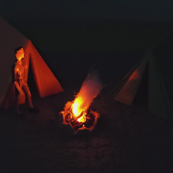 Campingplatz-Set Spur 0 (1:45) – 2 Zelte mit Lagerfeuer & Feuer-LED