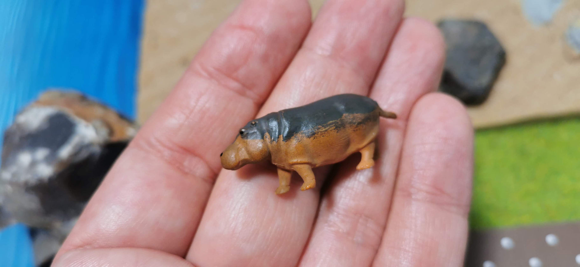 2x Figuren Set Hippo Tiere Flusspferd 1:87 (H0) - bemalt