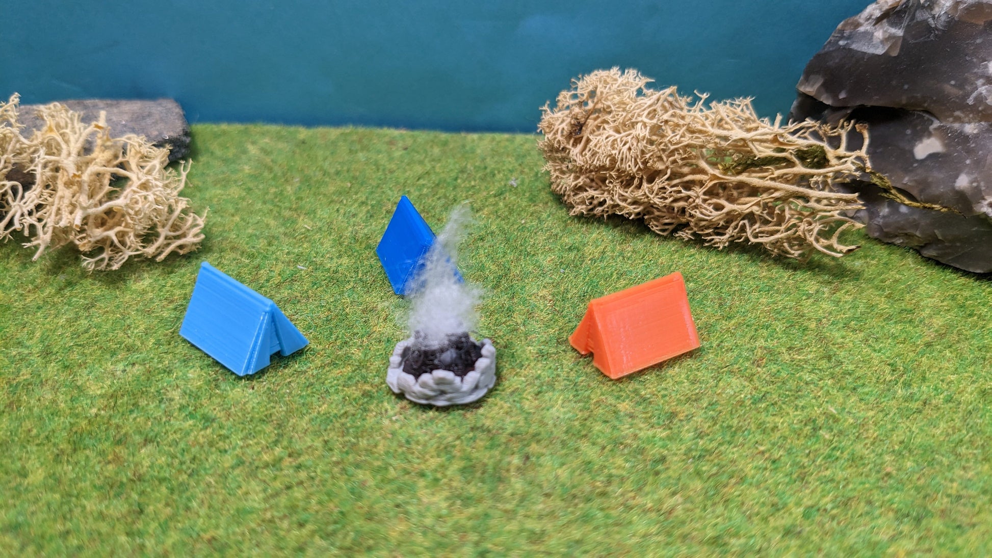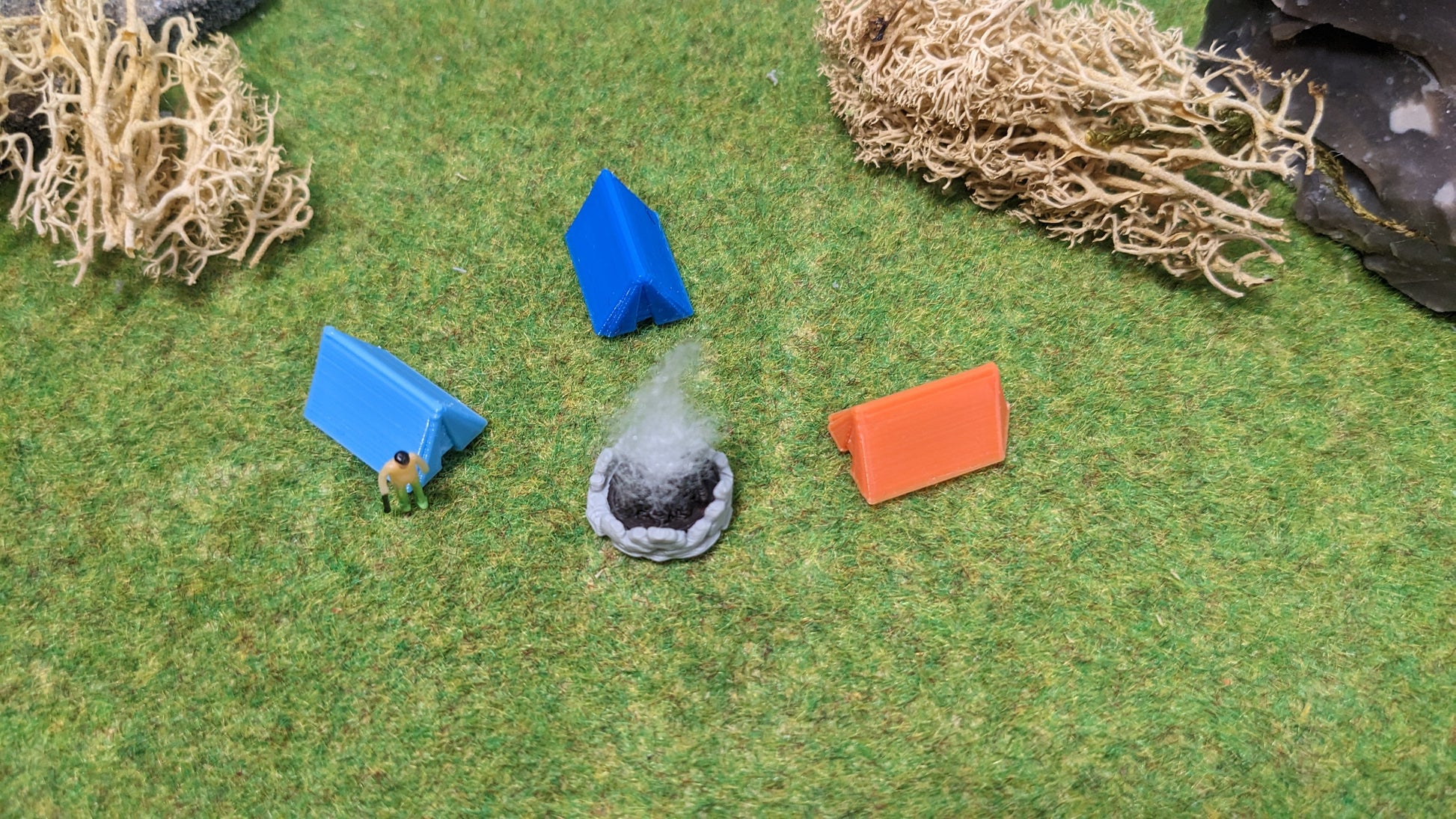 Erwecke deine Modellanlage mit diesem detailreichen Camping-Set zum Leben! Enthalten sind 3 farbig gedruckte Zelte sowie eine Feuerstelle mit realistischer LED-Flackerbeleuchtung – perfekt für Campingplätze, Badestrände oder Outdoor-Szenen.