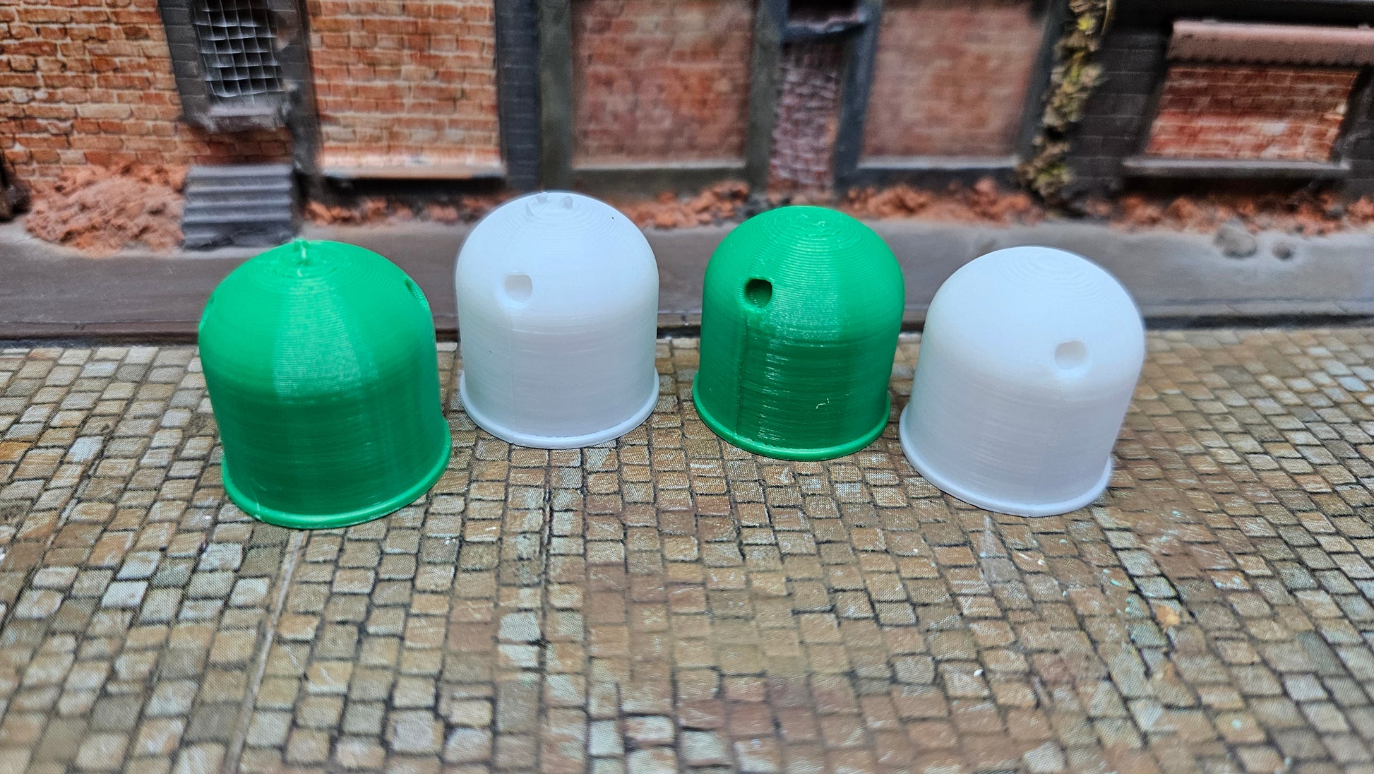 Die Modelle werden aus Kunststoff gefertigt und überzeugen durch ihre detailgetreue Ausführung. Sie stellen typische Altglascontainer dar und ergänzen jede moderne Stadtszene sinnvoll.