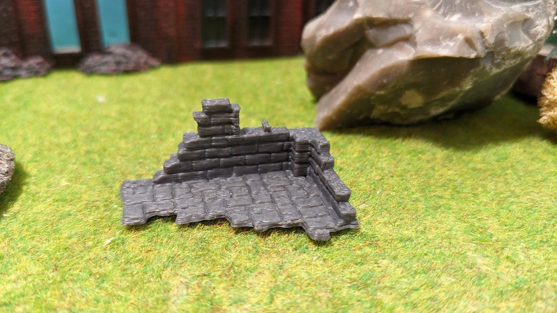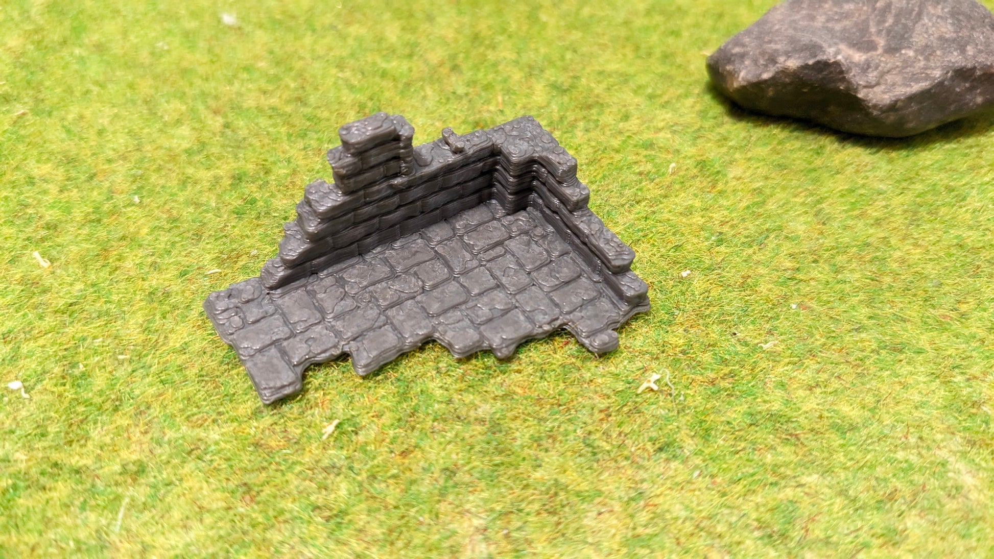 Diese kompakte Variante einer alten Burgruine bringt stimmungsvolle Details auf deine Modellanlage – ideal für kleinere Szenen, Hintergründe oder als Ergänzung zu größeren Ruinenmodellen.