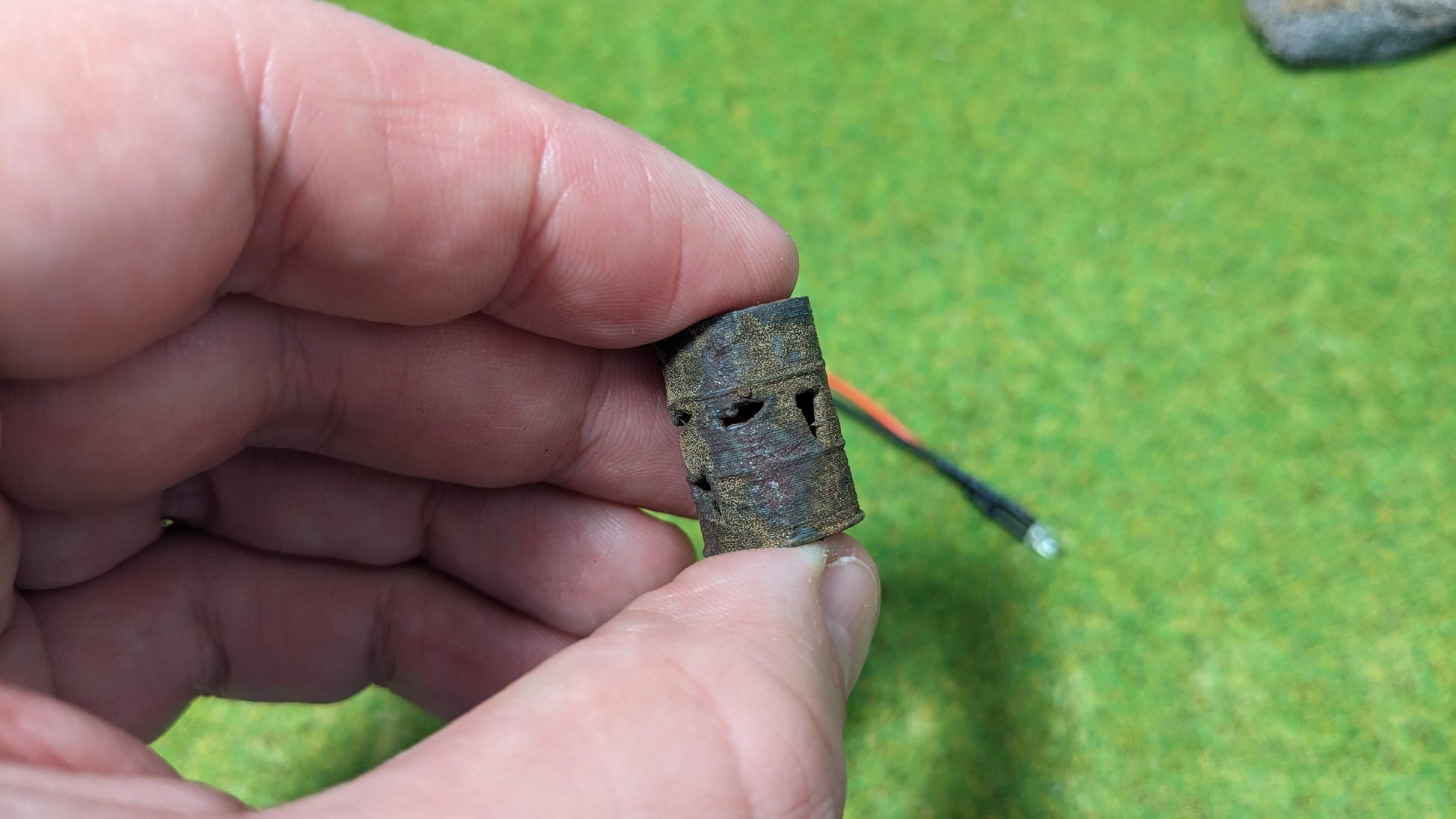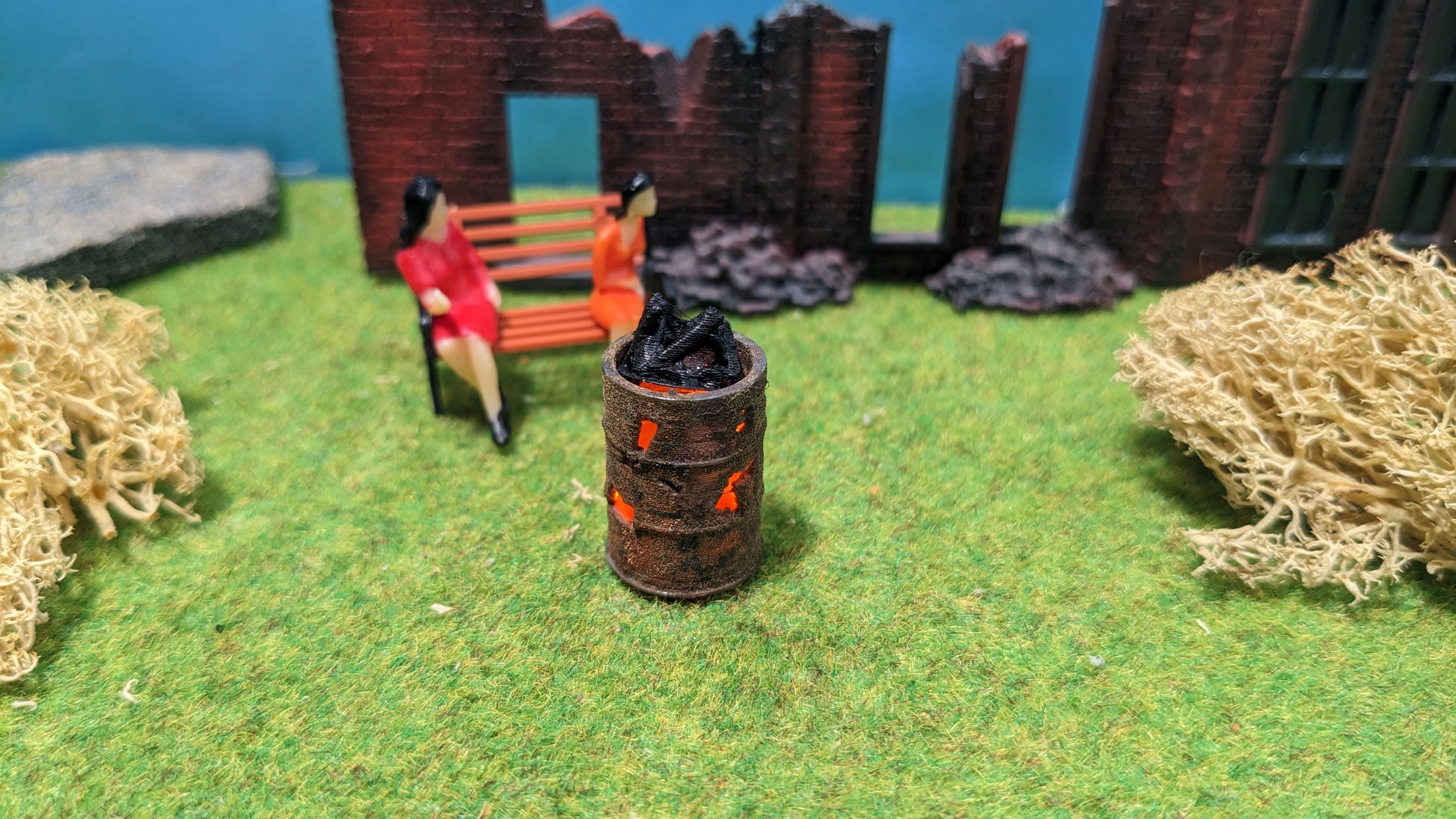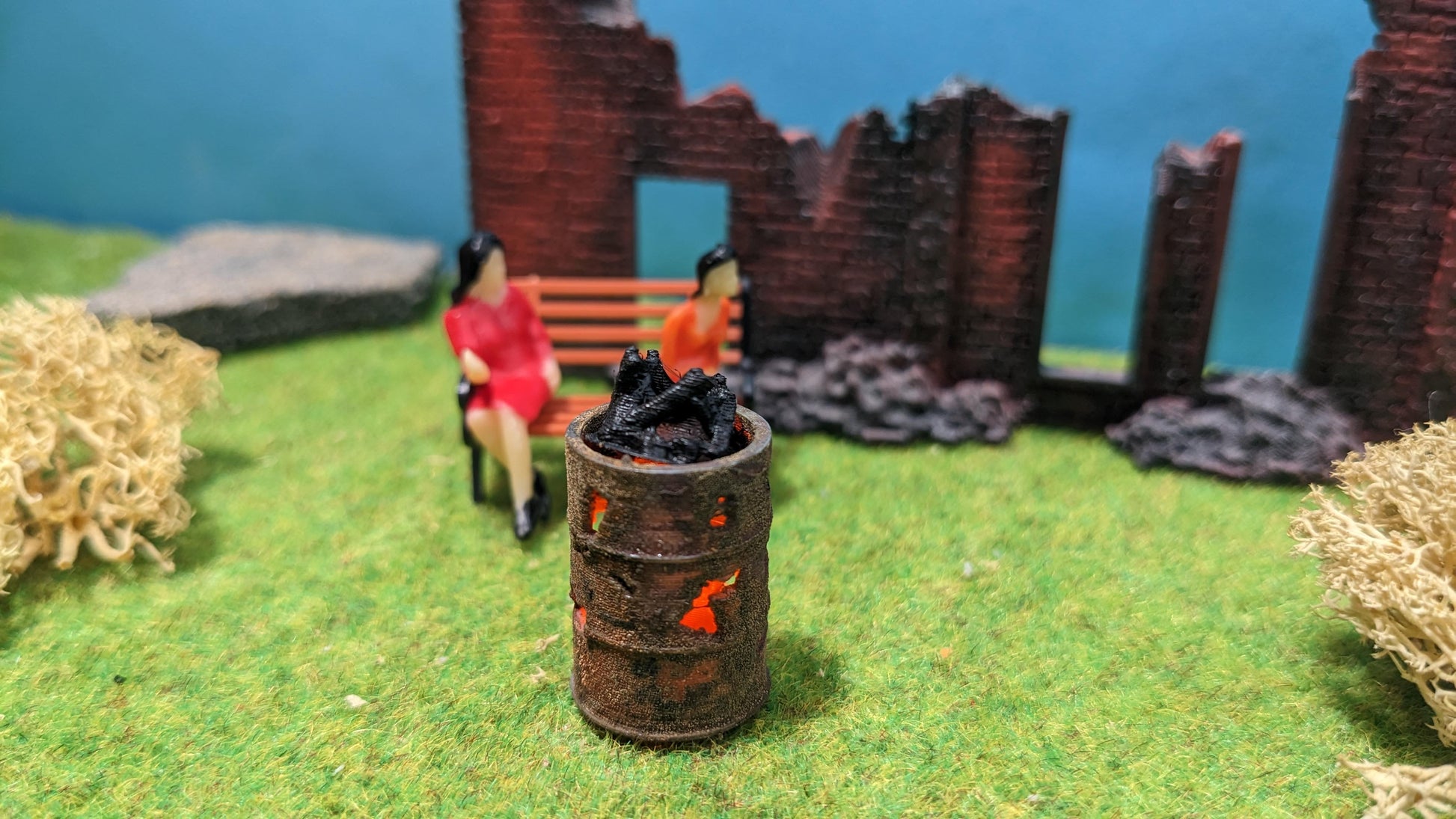 Brennendes Fass / Feuertonne mit Flacker-LED (1:45)