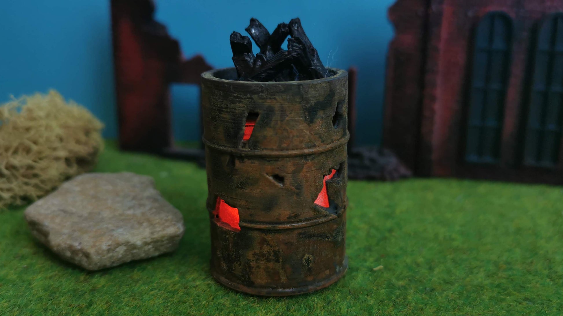 Brennendes Fass XL / Feuertonne mit Flacker-LED (1:22,5)