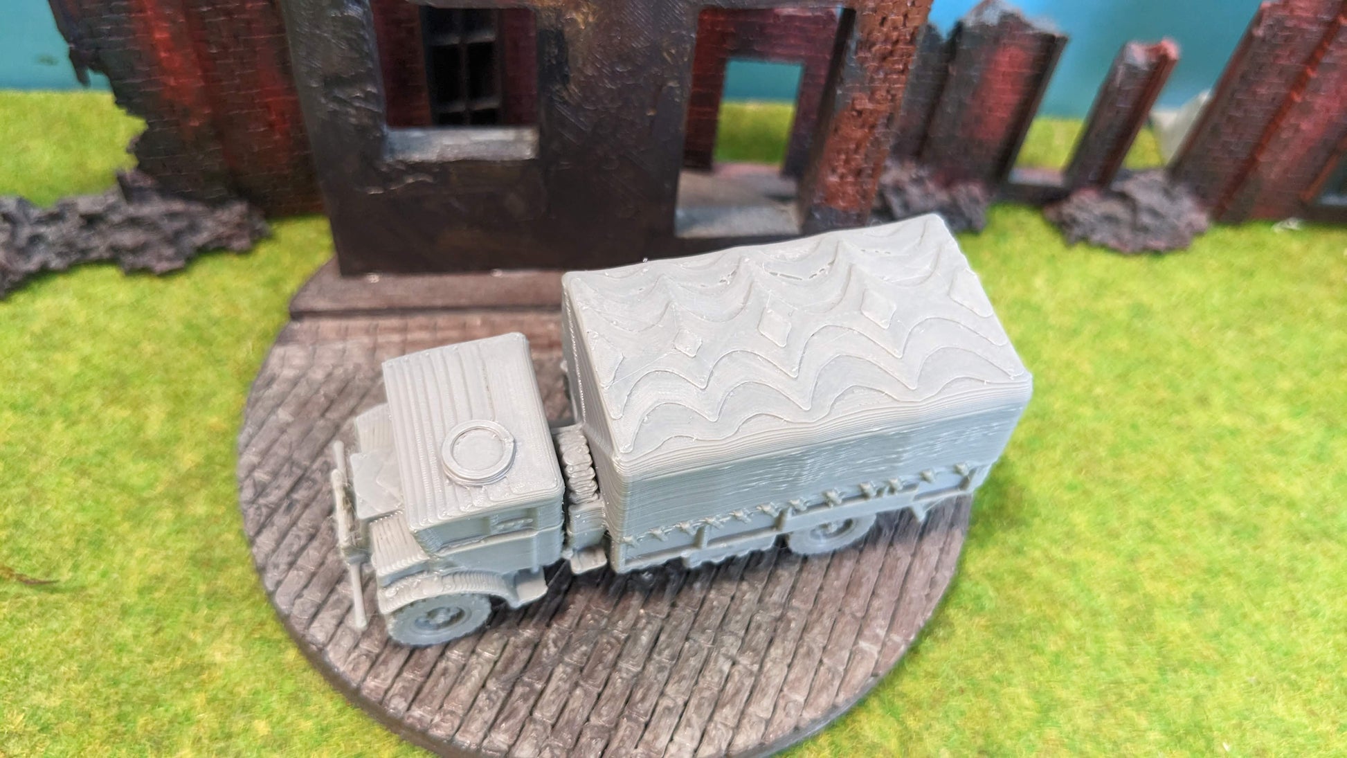 Der Canadian Military Pattern (CMP) F60L LKW "späte Version" ist ein robuster, kettengetriebener Lastkraftwagen, der für den Transport von Material und Personal im militärischen Einsatz entwickelt wurde. Die späte Version besticht durch verbesserte technische Merkmale und erhöhte Zuverlässigkeit und wurde während des Zweiten Weltkriegs vor allem von kanadischen und alliierten Streitkräften eingesetzt.