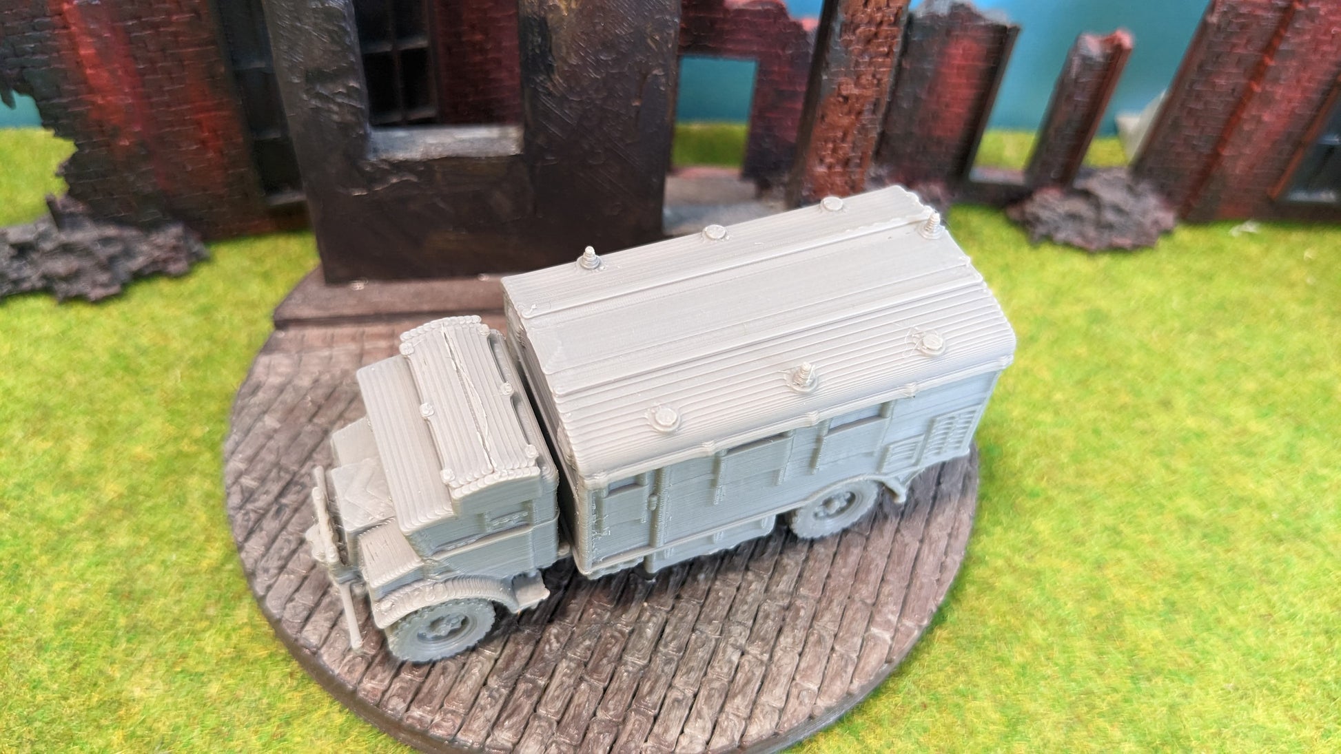 Der CMP 3T Kommando LKW LP C60L ist ein leichter, halbkettengetriebener Kommandolastwagen, der für den Führungseinsatz und Transport von Personal im militärischen Umfeld konzipiert wurde. Durch seine robuste Bauweise und den halbkettengetriebenen Antrieb bietet er gute Geländegängigkeit und Flexibilität bei unterschiedlichen Einsätzen, insbesondere im Zweiten Weltkrieg bei den kanadischen und britischen Streitkräften.