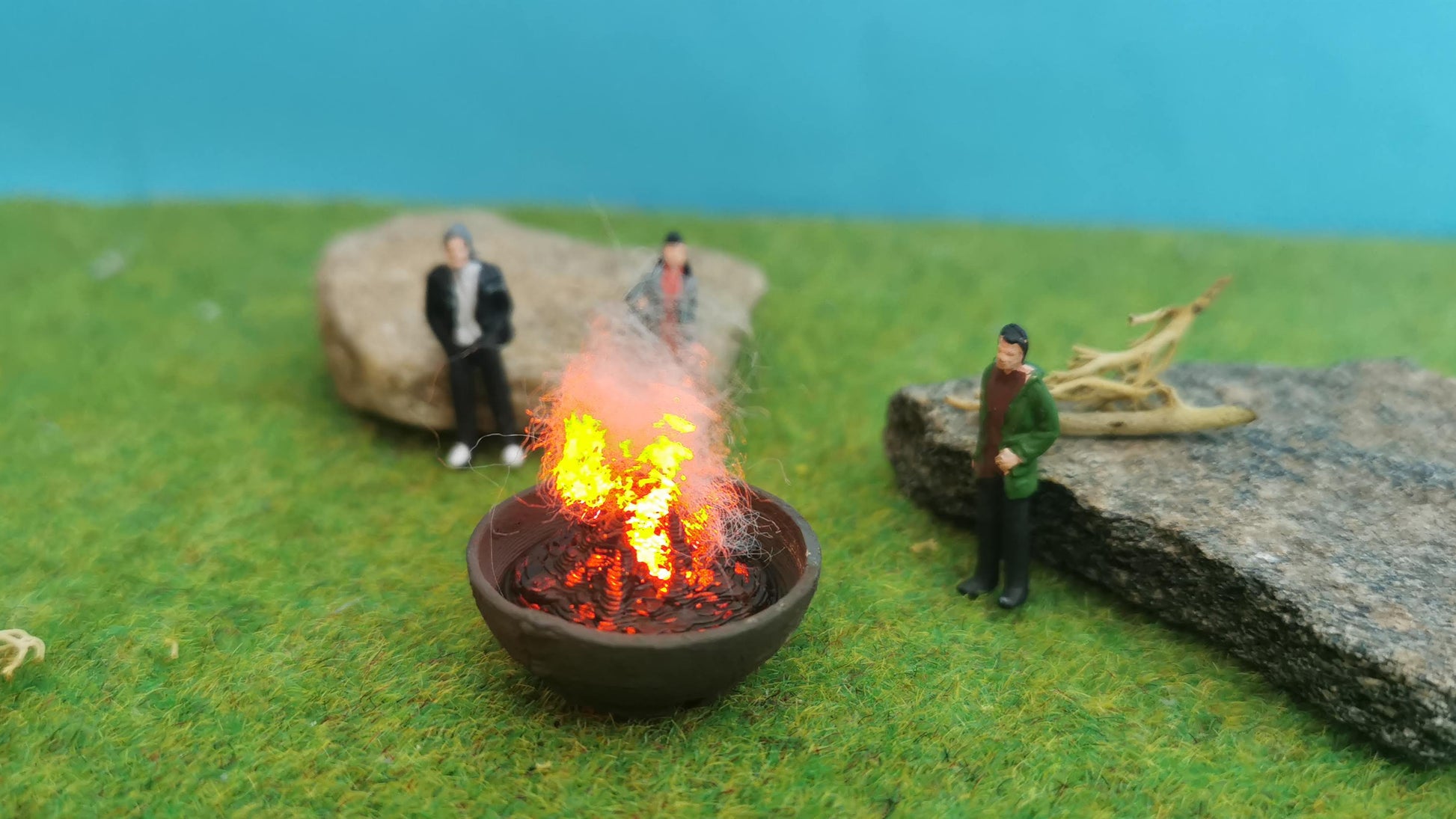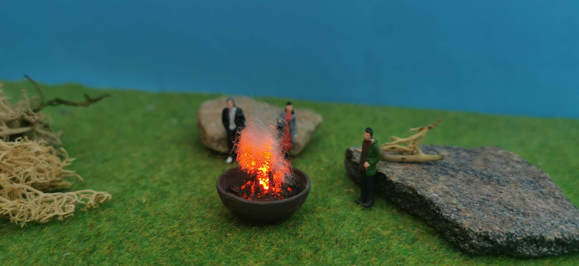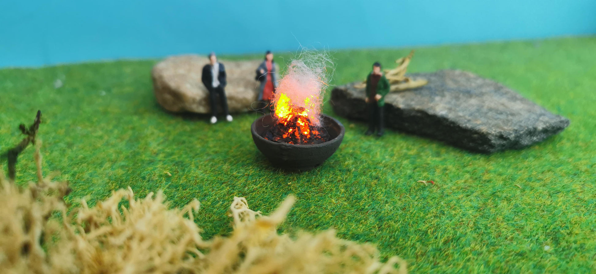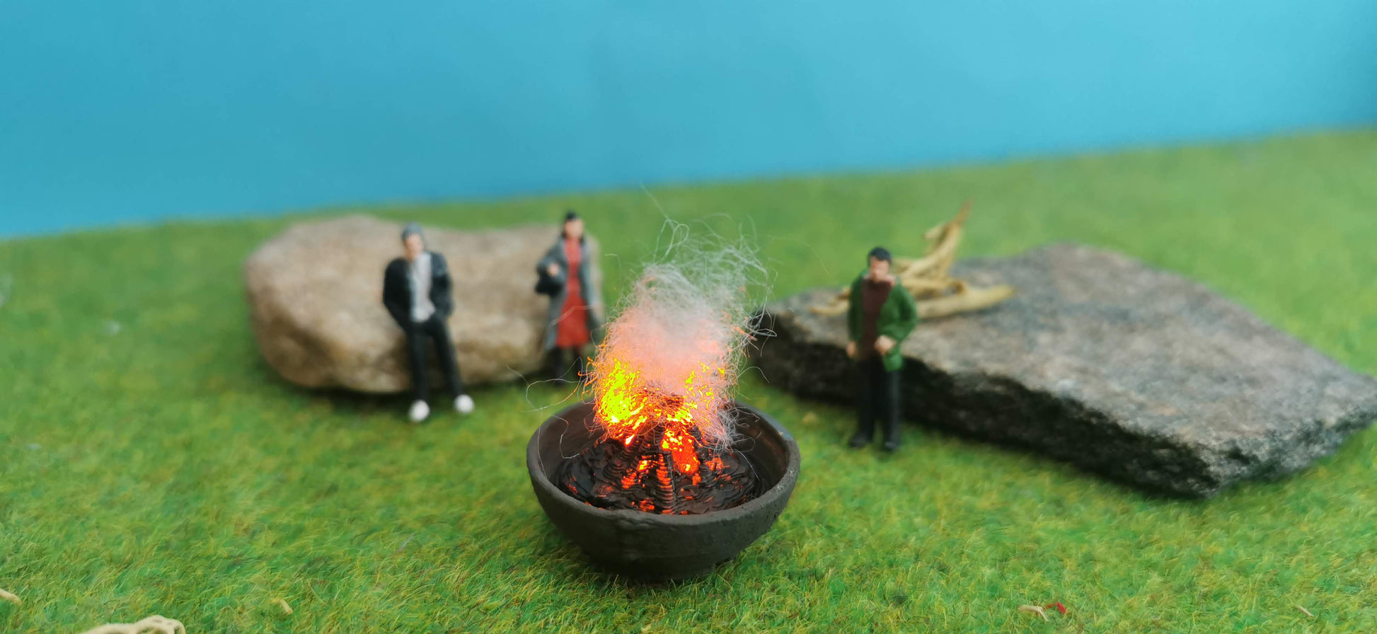 Verleihe deiner Modelllandschaft eine gemütliche, lebendige Atmosphäre! Diese detailreiche Feuerschale mit integriertem Flacker-LED-Modul sorgt für täuschend echte Glut- und Flammeneffekte. Die beiliegende Watte verstärkt den Effekt und lässt die Flammenhöhe individuell anpassen – perfekt für Campingplätze, Gartenpartys, historische Märkte oder Stadtfeste in deiner Miniaturwelt.