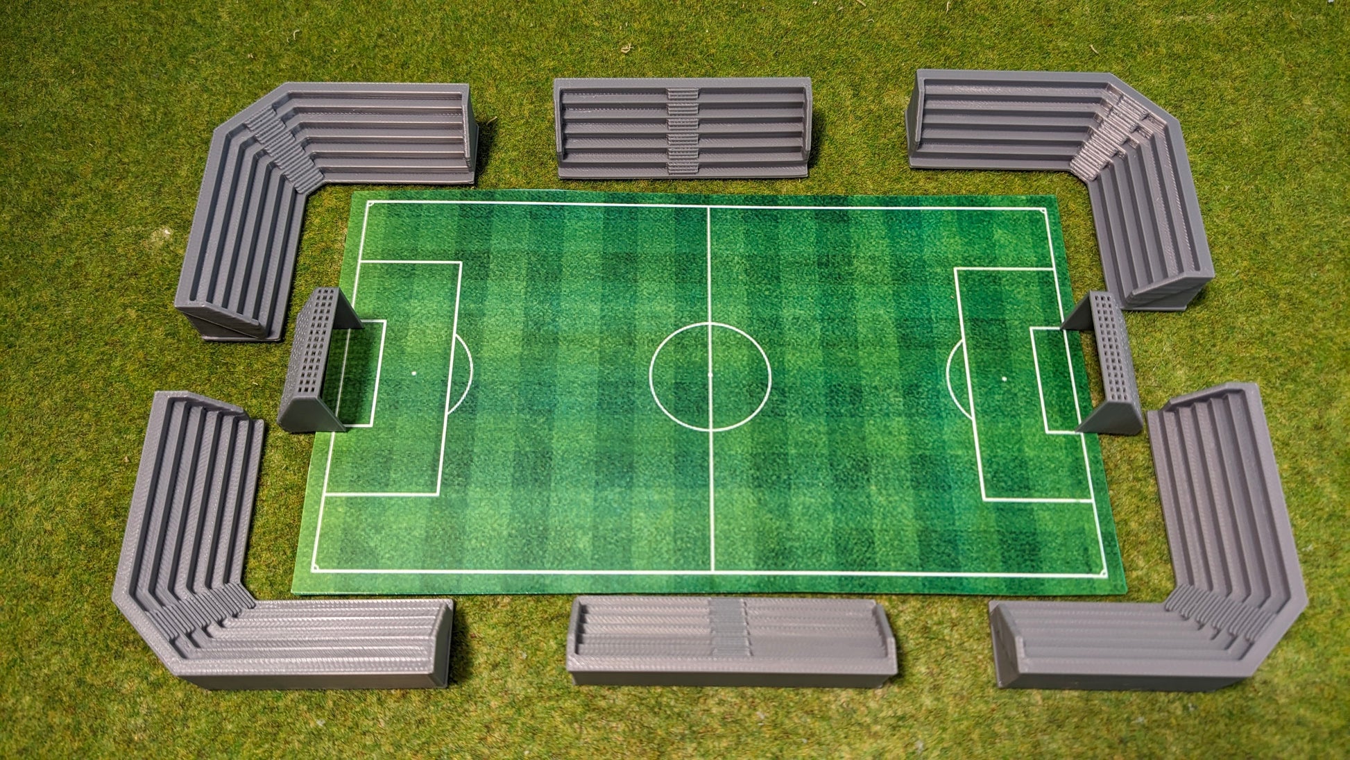 - Inhalt: 1x Spielfeld, 2x Tore, 6x Tribünen, Aufkleber
