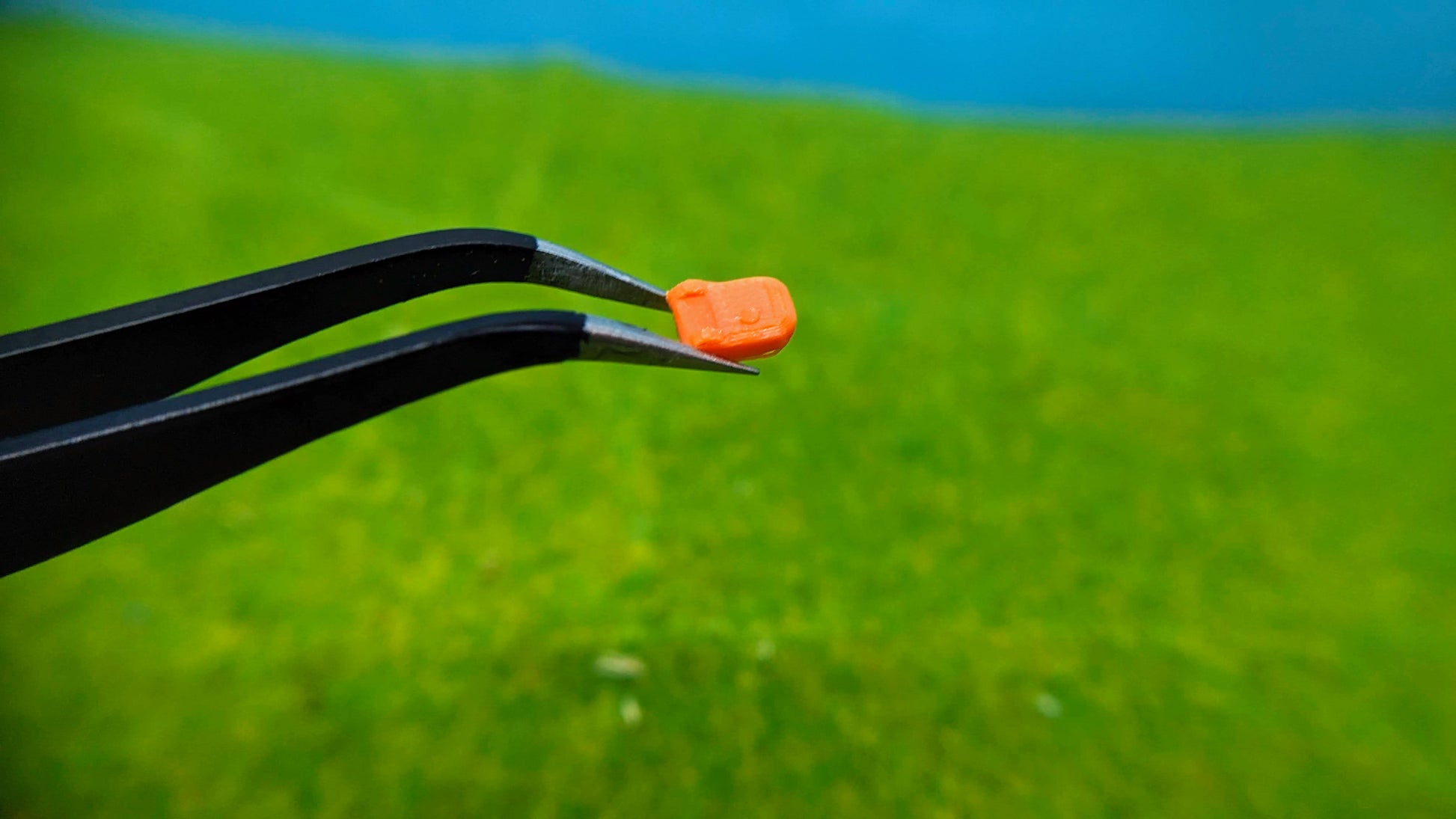 Dieser kleine Modell-Rasenroboter ist einem bekannten Design aus dem modernen Gartenbereich nachempfunden und eignet sich hervorragend als Detailzubehör für Modellgärten, Dioramen, Gartenbahnen oder Spur-1-Anlagen in den Maßstäben 1:87 (H0), 1:45 (Spur 1), 1:32 (kompatibel mit 1:35) und 1:22,5 (G).