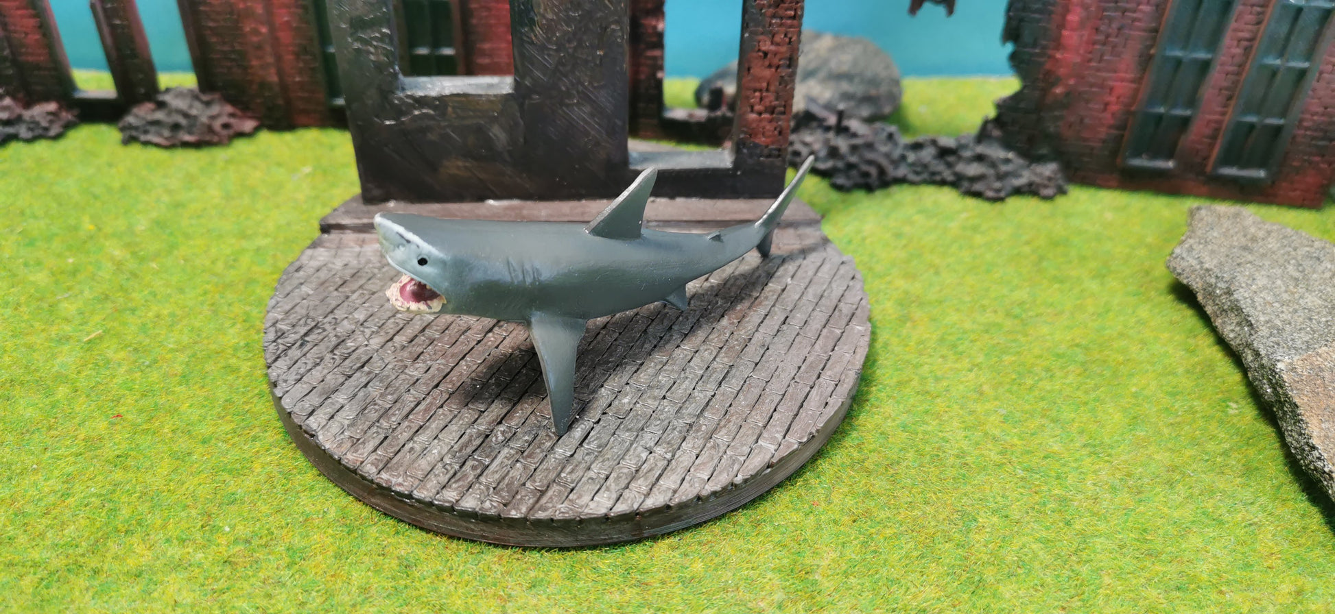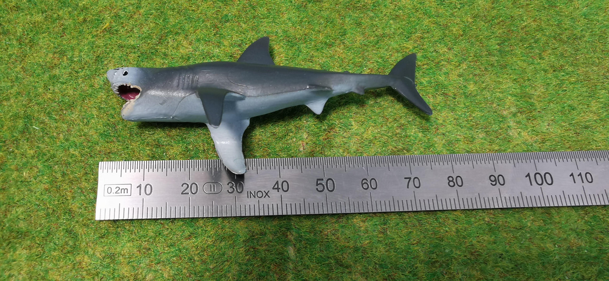 Dieses fertig bemalte Weiße Große Hai-Modell im Maßstab 1:87 (H0) ist eine imposante Ergänzung für Ihr Diorama. Die Figur eignet sich hervorragend zur Darstellung von Wassertieren in einem Zoo-Diorama, einem Aquarium oder spannenden maritimen Szenen. Dank ihrer Bemalung kann die Figur direkt in Ihre Szene integriert werden und passt perfekt zu anderen H0-Modellen. Passt auch zu 1:72 und anderen Maßstäben.