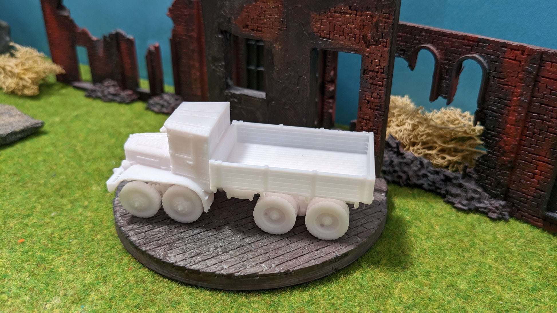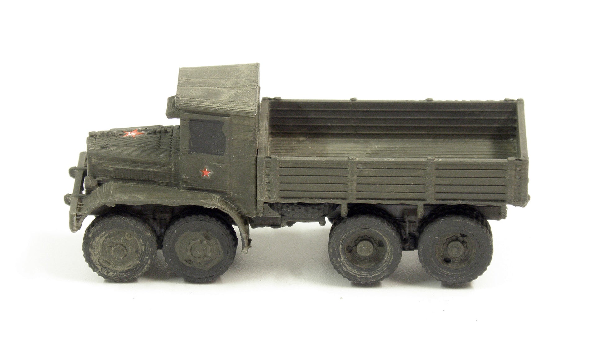 Der YaG-12 schwerer russischer LKW "Pritsche" ist ein sowjetischer 6×4-Lastkraftwagen, der in den späten 1930er- und frühen 1940er-Jahren für den Transport von schweren Lasten und Truppen konzipiert wurde. Mit seiner stabilen Pritsche, hoher Nutzlast und massiver Bauweise war er besonders geeignet für den Einsatz auf unbefestigten Straßen und wurde unter anderem im Zweiten Weltkrieg an der Ostfront eingesetzt.