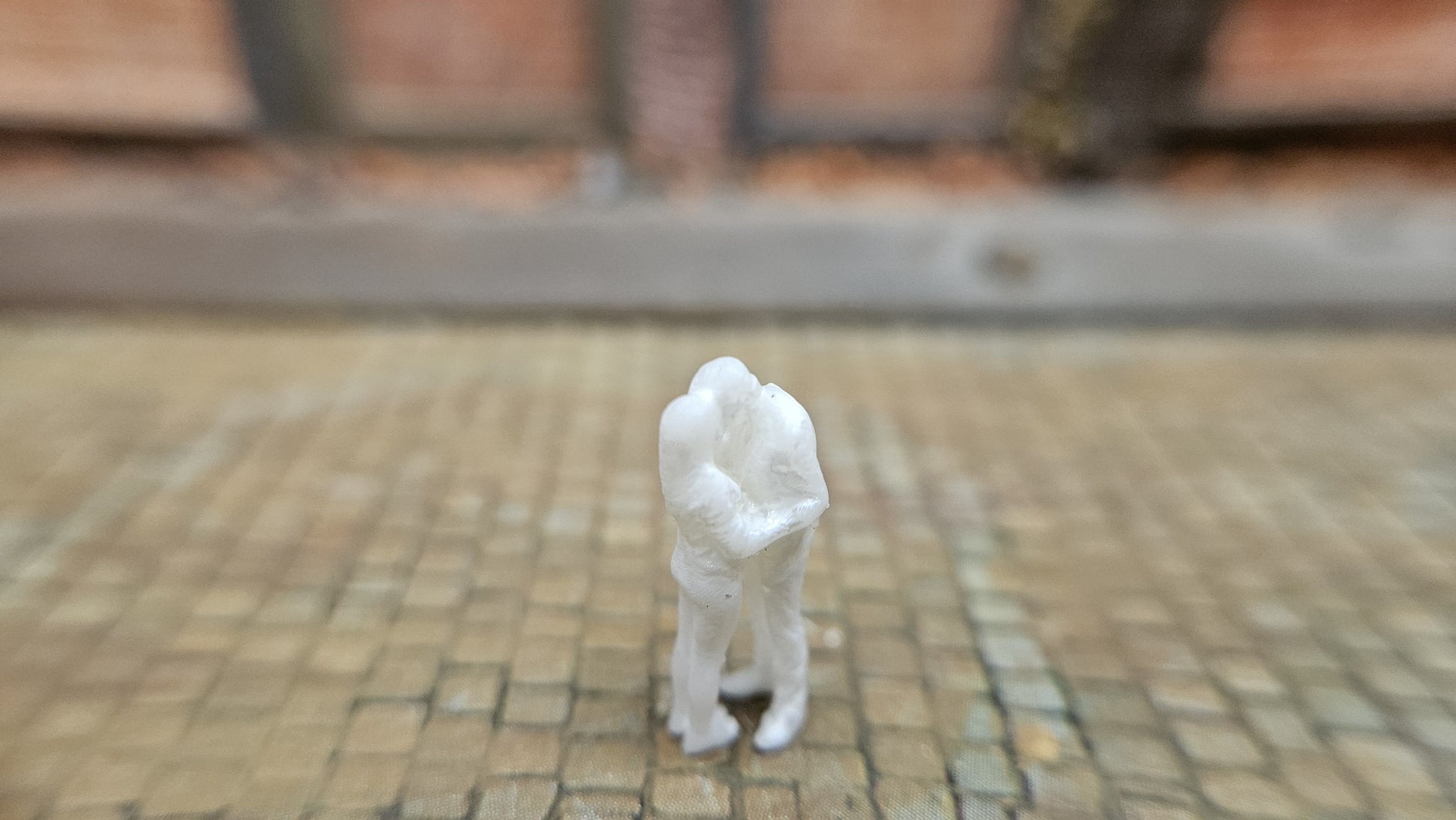 Ein besonderer Moment für deine Modellanlage: Das Liebespaar "Am Bahnsteig" im Maßstab 1:87 (Spur H0) zeigt eine emotionale Abschiedsszene – ideal für Bahnsteige, Stadtbereiche oder romantische Details in Dioramen. Die Figurengruppe besteht aus zwei Personen in enger Umarmung, gefertigt aus hochwertigem Resin, mit feiner Struktur und optionaler Handbemalung.