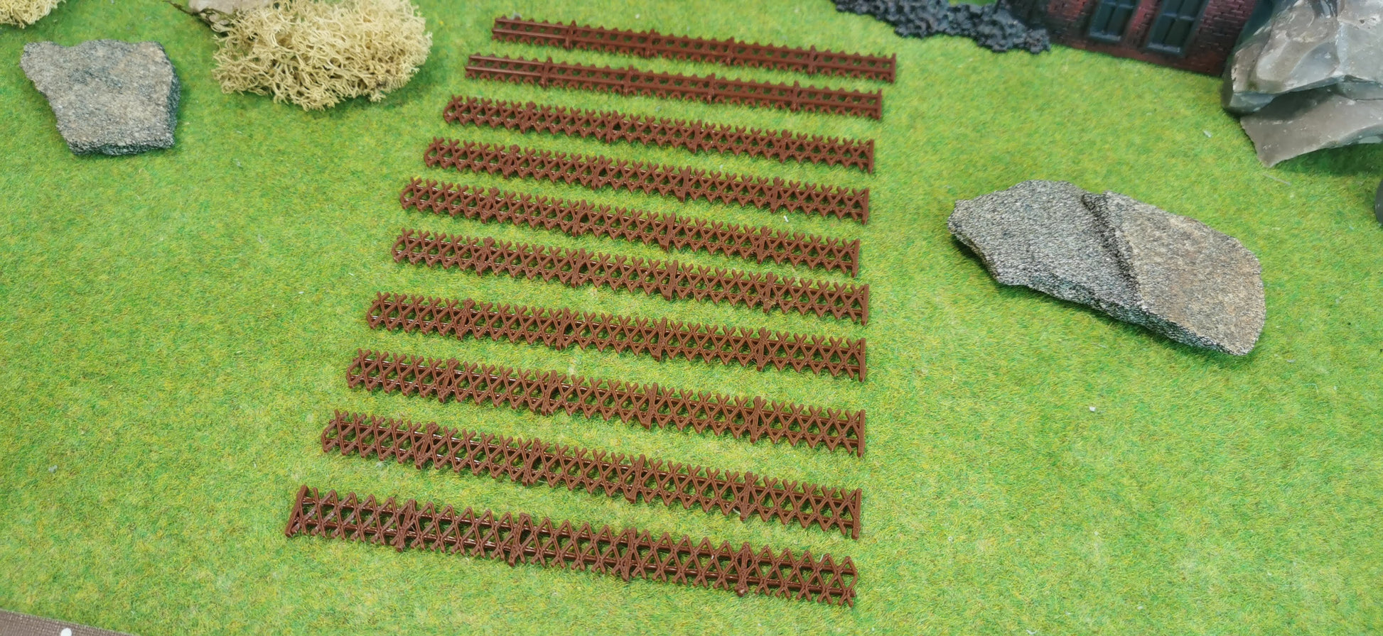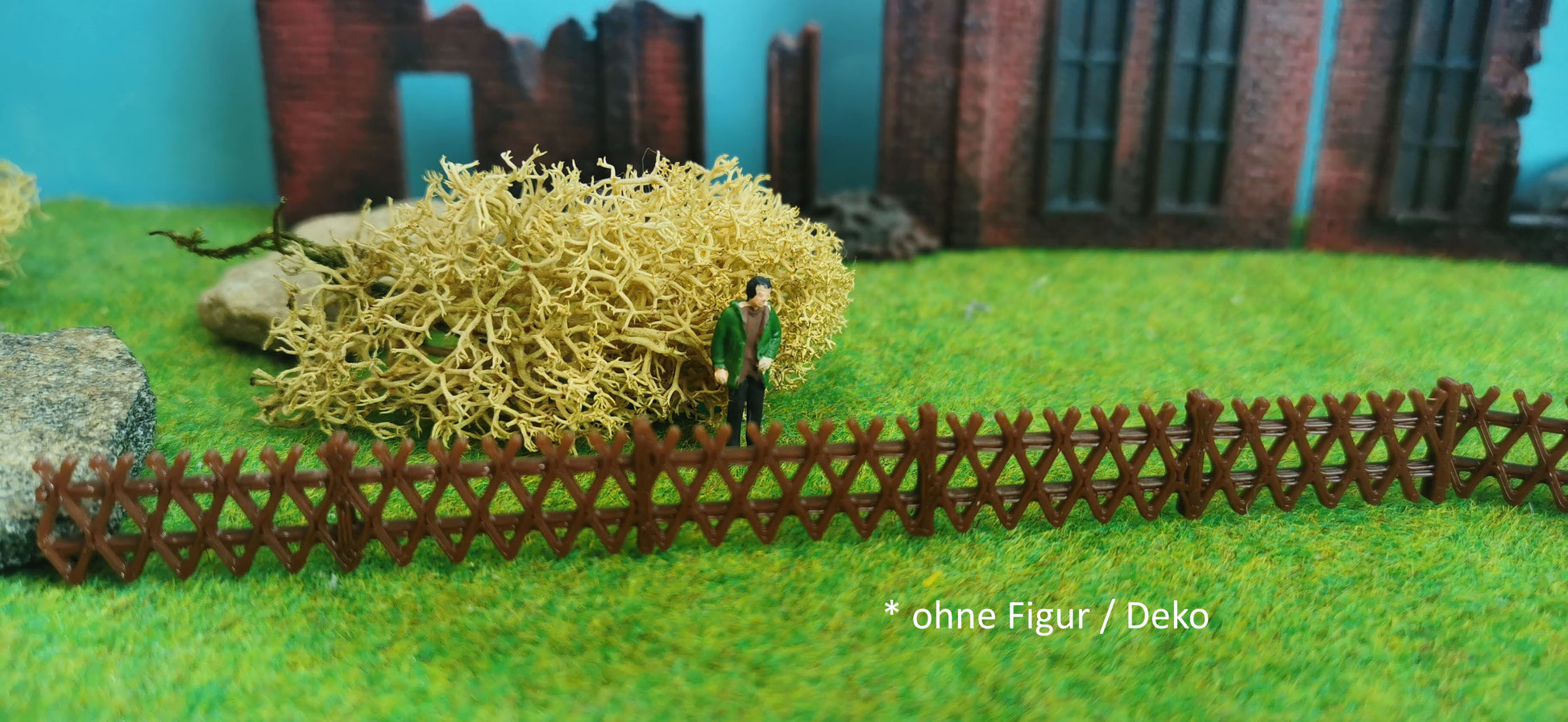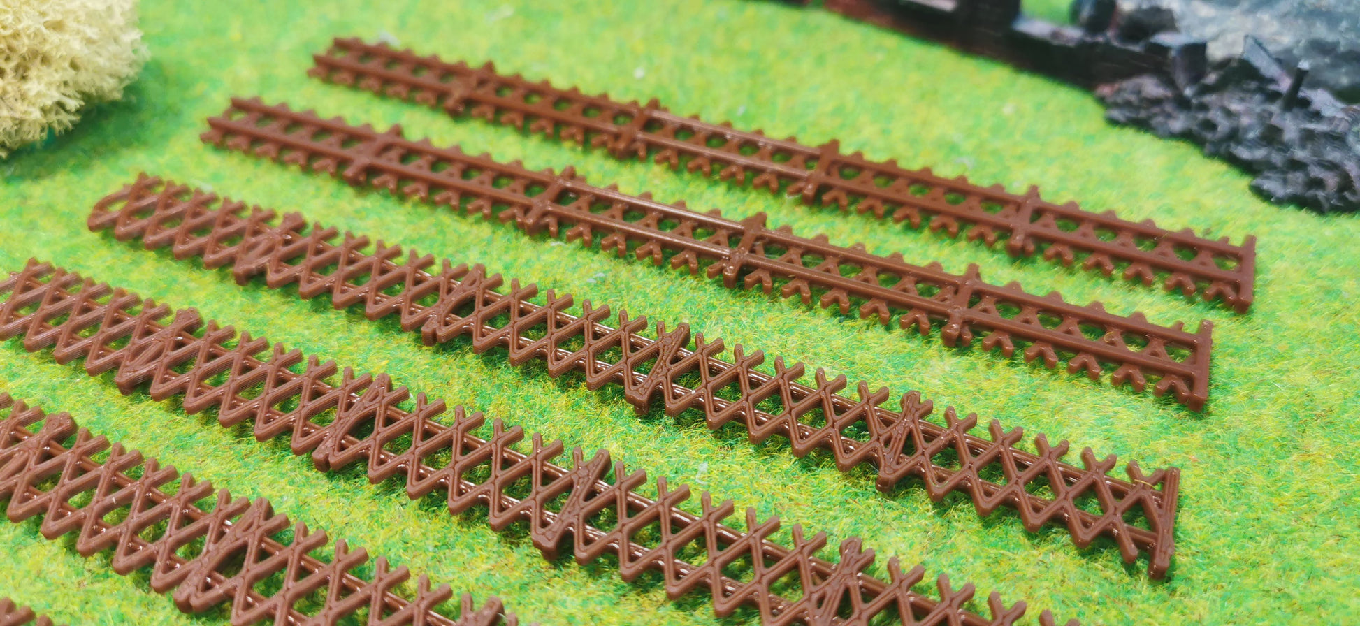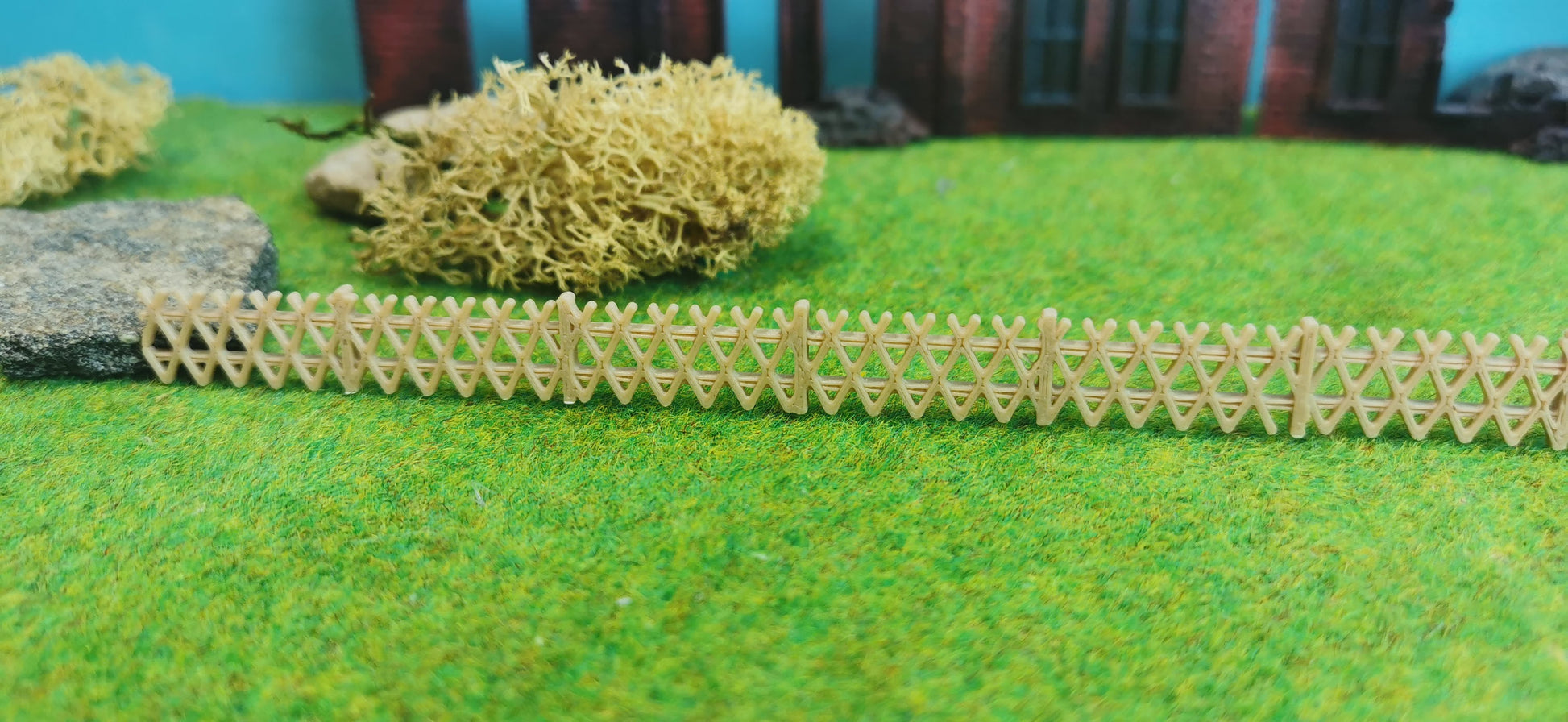 Klassischer Jägerzaun zur realistischen Gestaltung von Grundstücken, Gärten und ländlichen Szenen auf Modellbahnanlagen und Dioramen. Der Zaun ist aus PLA im FDM-3D-Druckverfahren gefertigt – stabil, leicht und detailliert.