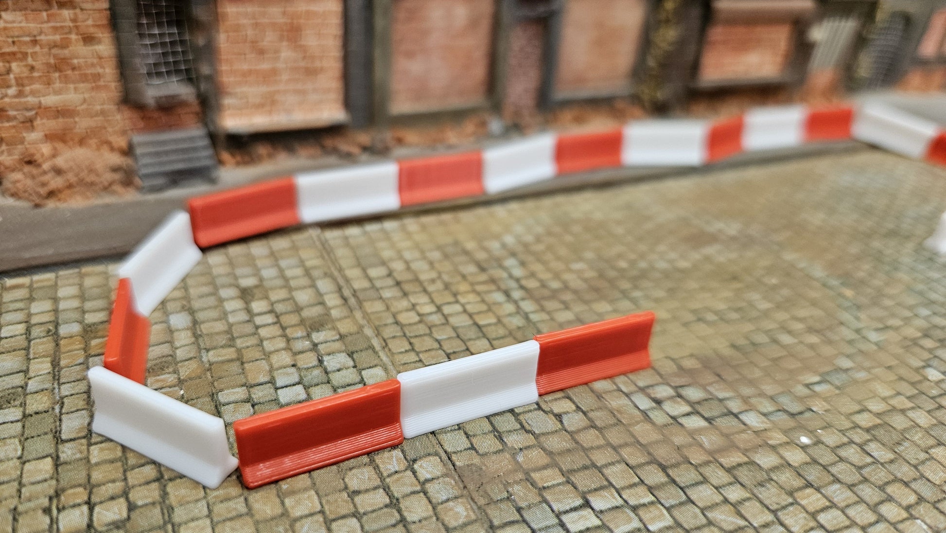 Diese klassischen, rot-weißen Rennbarrieren sind ideal zur realistischen Gestaltung von Rennstrecken, Kartbahnen, Motorsport-Veranstaltungen oder temporären Sperrzonen auf Modellanlagen. Die Teile sind robust aus PLA im FDM-Druckverfahren gefertigt.