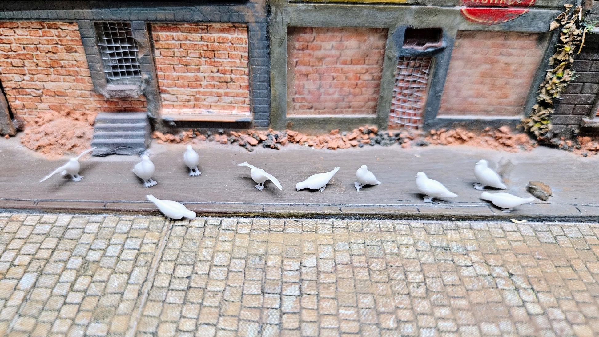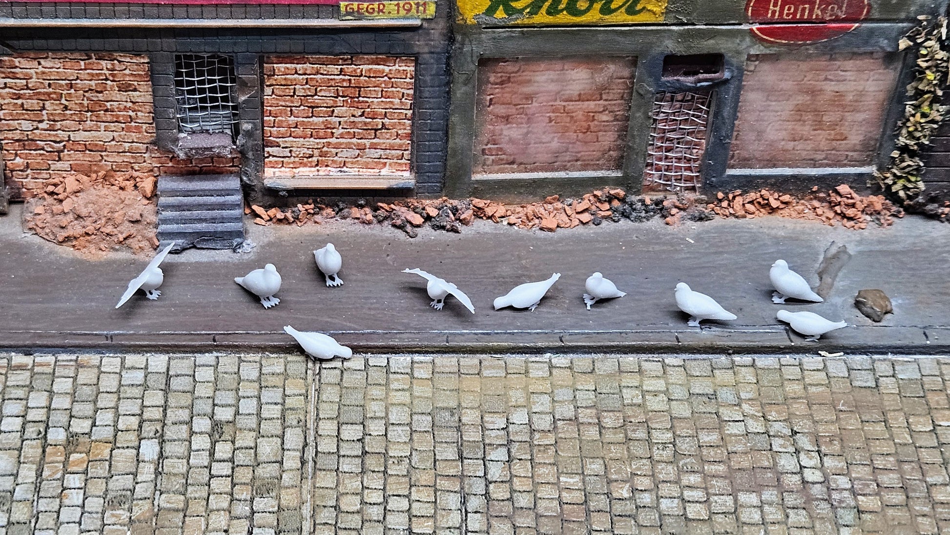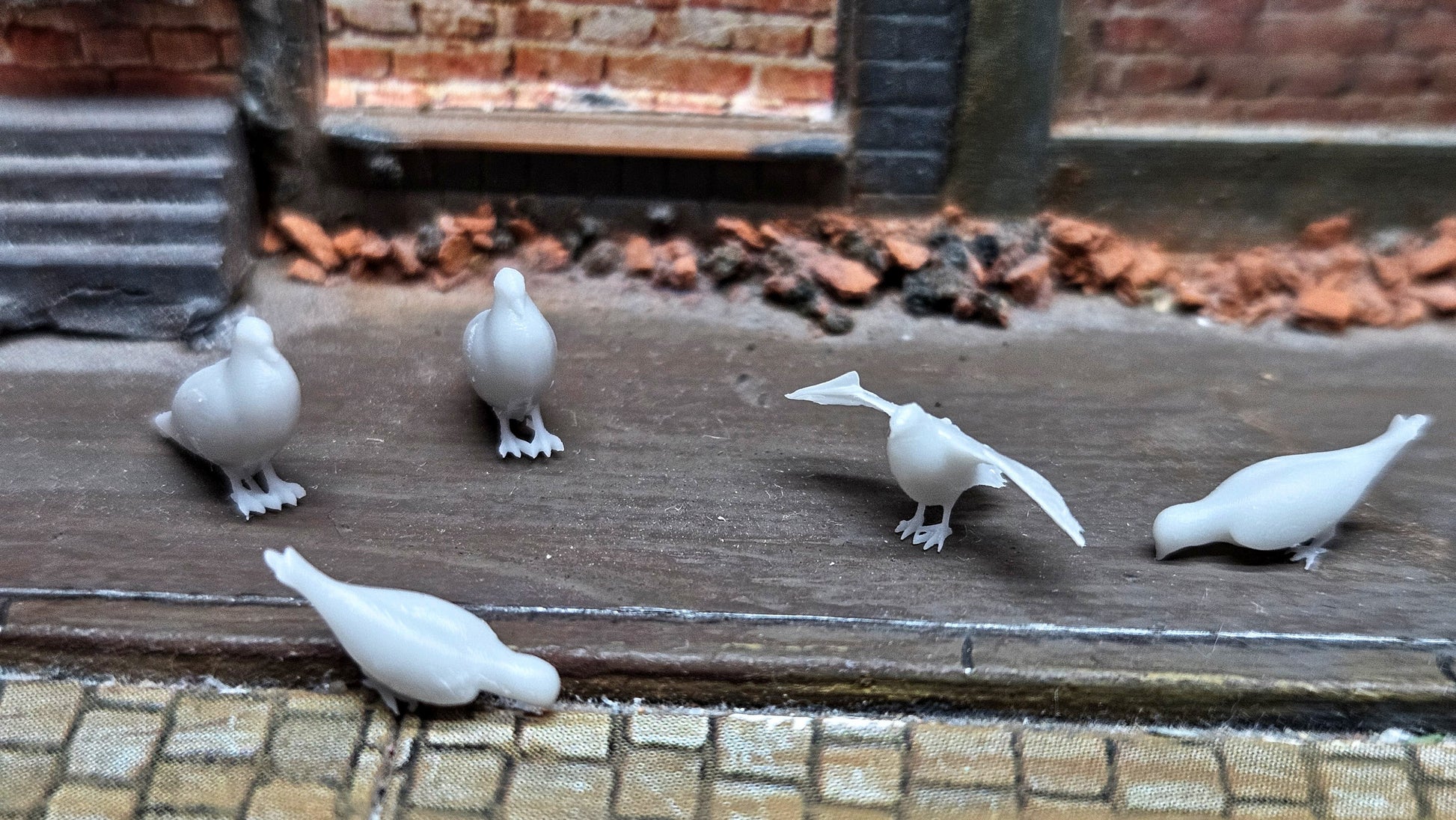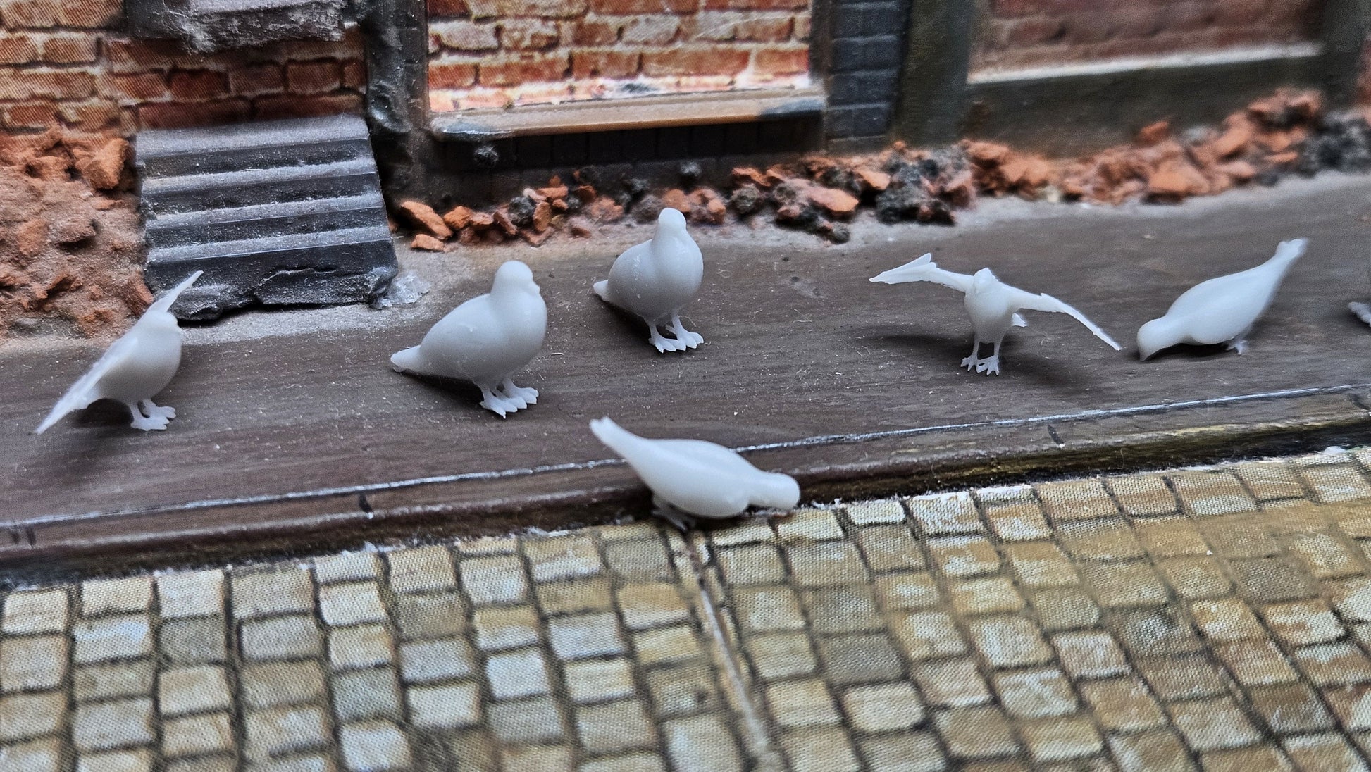 Filigrane Taubenfiguren für detailverliebte Modellbauer: Dieses Set enthält 10 unbemalte Tauben aus hochwertigem Resin, gefertigt in Deutschland. Die Miniaturen sind besonders fein modelliert und eignen sich ideal zur realistischen Gestaltung von Dioramen, Stadtszenen, Hofanlagen oder Dachlandschaften im Maßstab 1:35 oder 1:32.
