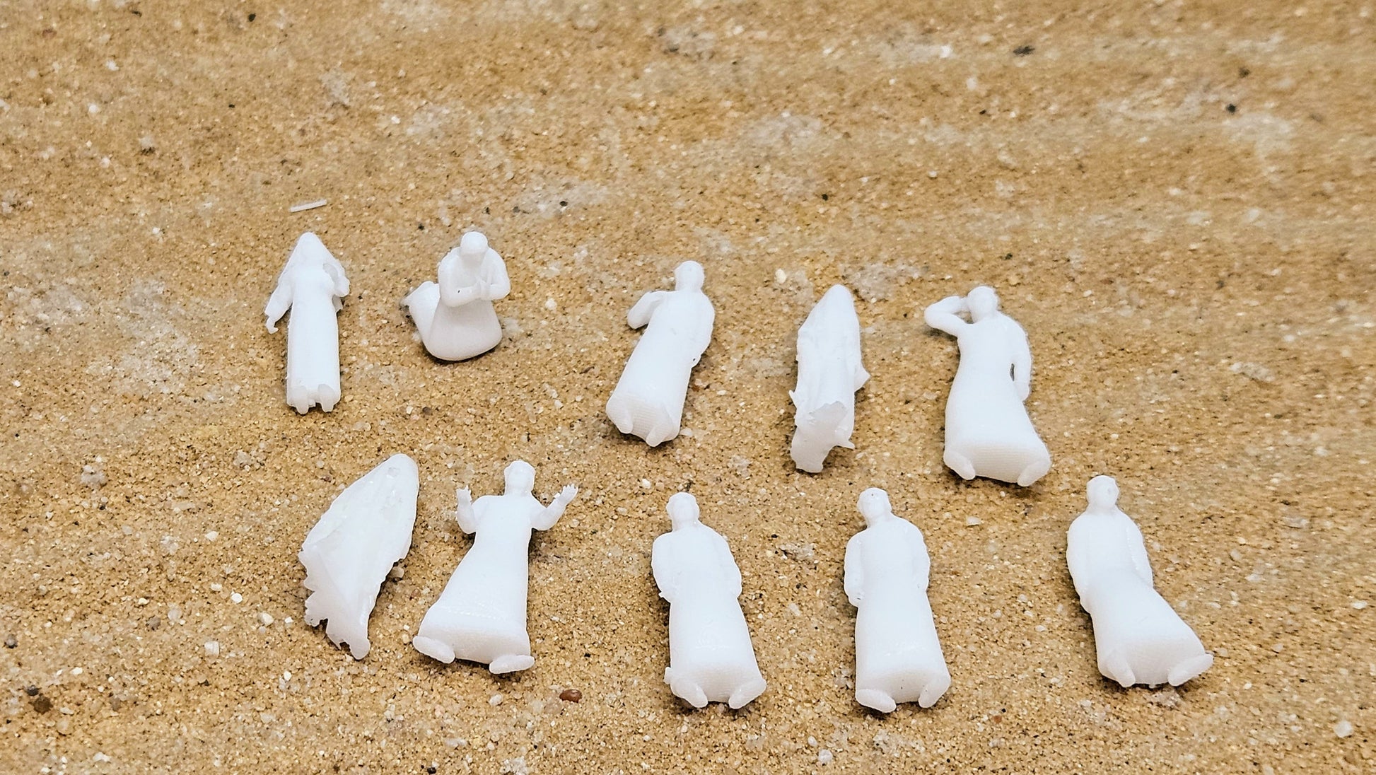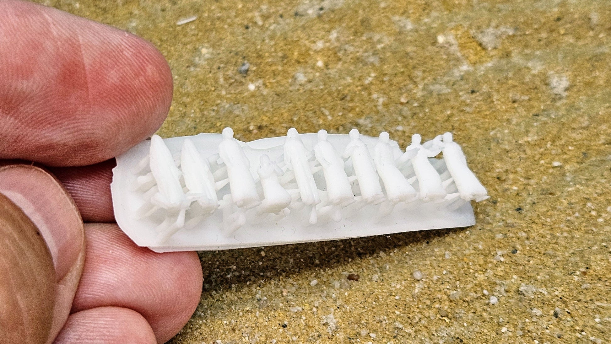 Die Figuren sind aus Resin gefertigt und in zwei Varianten erhältlich: unbemalt im Rohzustand oder per Hand in Deutschland (nur für Spur H0) bemalt.
