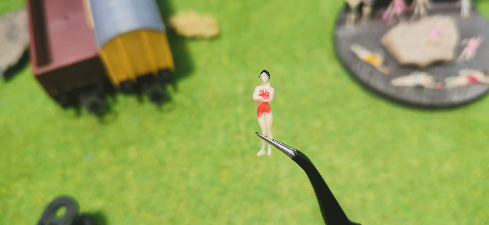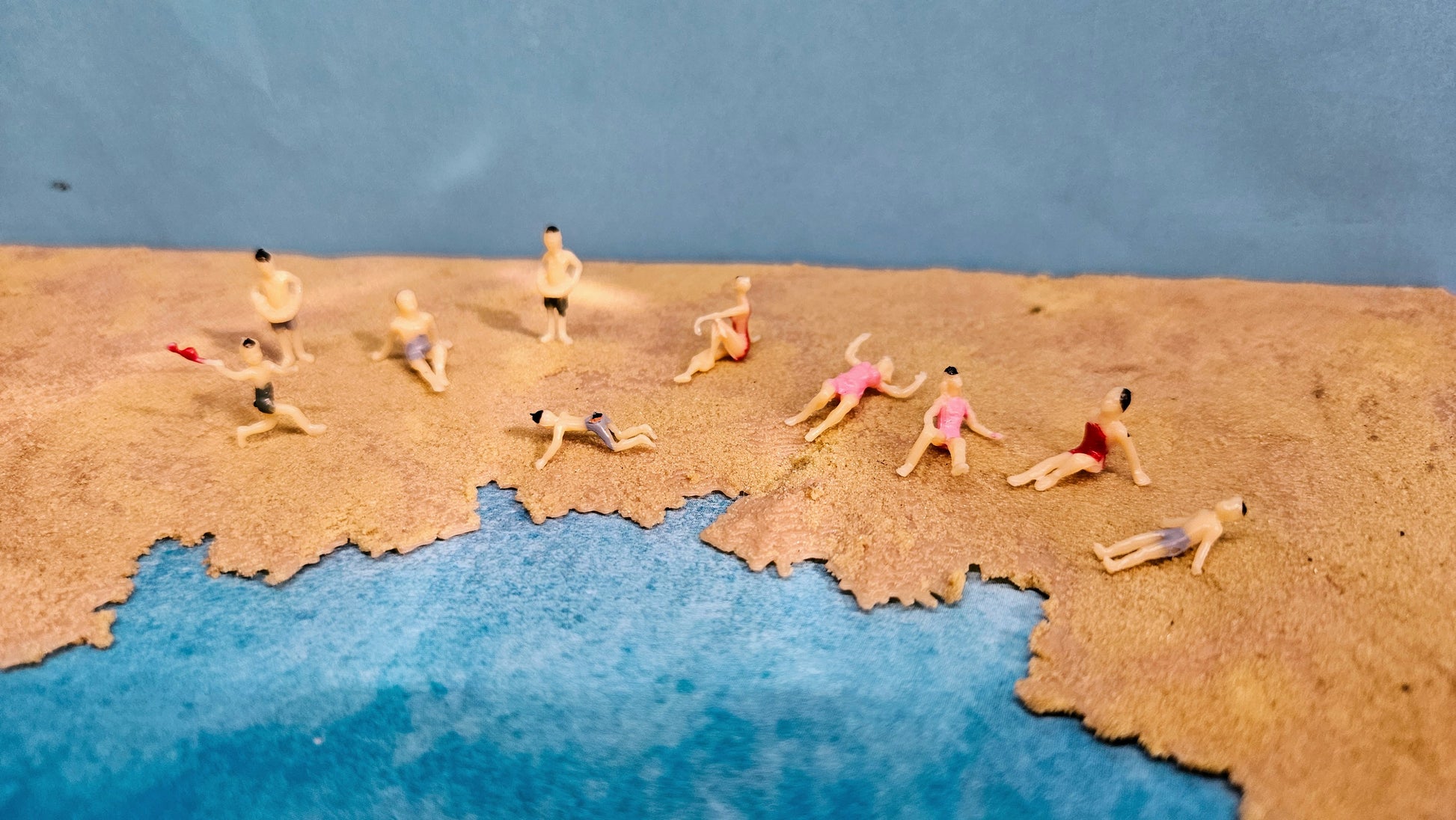 Enthalten sind verschiedene Männer-, Frauen- und Kinderfiguren in unterschiedlichen Posen – perfekt für die Gestaltung von lebendigen Strandszenen oder sommerlichen Dioramen.