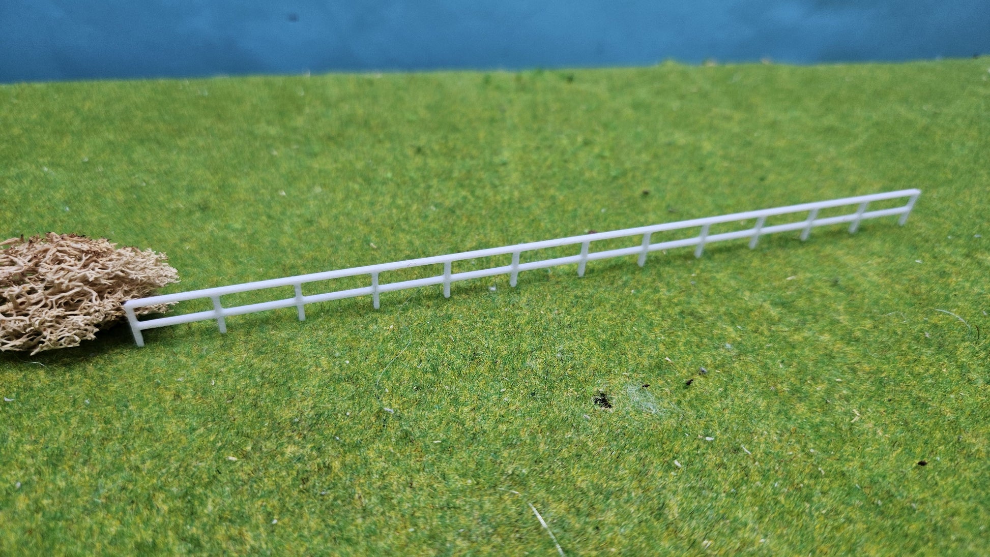 Dieser detailreiche weiße Koppelzaun eignet sich perfekt für den Einsatz auf Modellbahnanlagen oder in Dioramen. Mit seinem realistischen Design ist er ideal, um Pferdekoppeln, Weiden, Gärten oder landwirtschaftliche Szenen im Maßstab 1:87 authentisch zu gestalten. Passt auch zu 1:100 und 1:72 Dioramen.