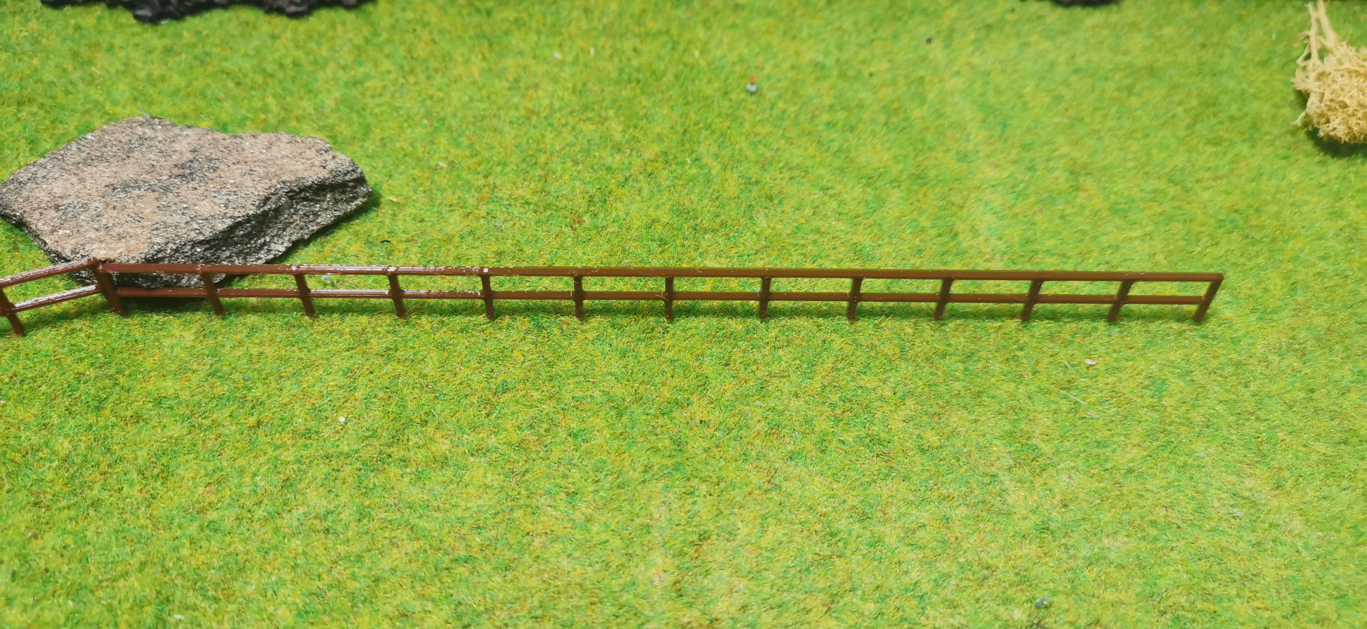 Dieses Set besteht aus 12 Geländer- bzw. Zaunelementen, hergestellt im FDM-Druckverfahren aus PLA-Filament. Die Zäune eignen sich ideal für Modellbau, Dioramen oder Anlagenbau – etwa im Stadt- oder Industriebereich.