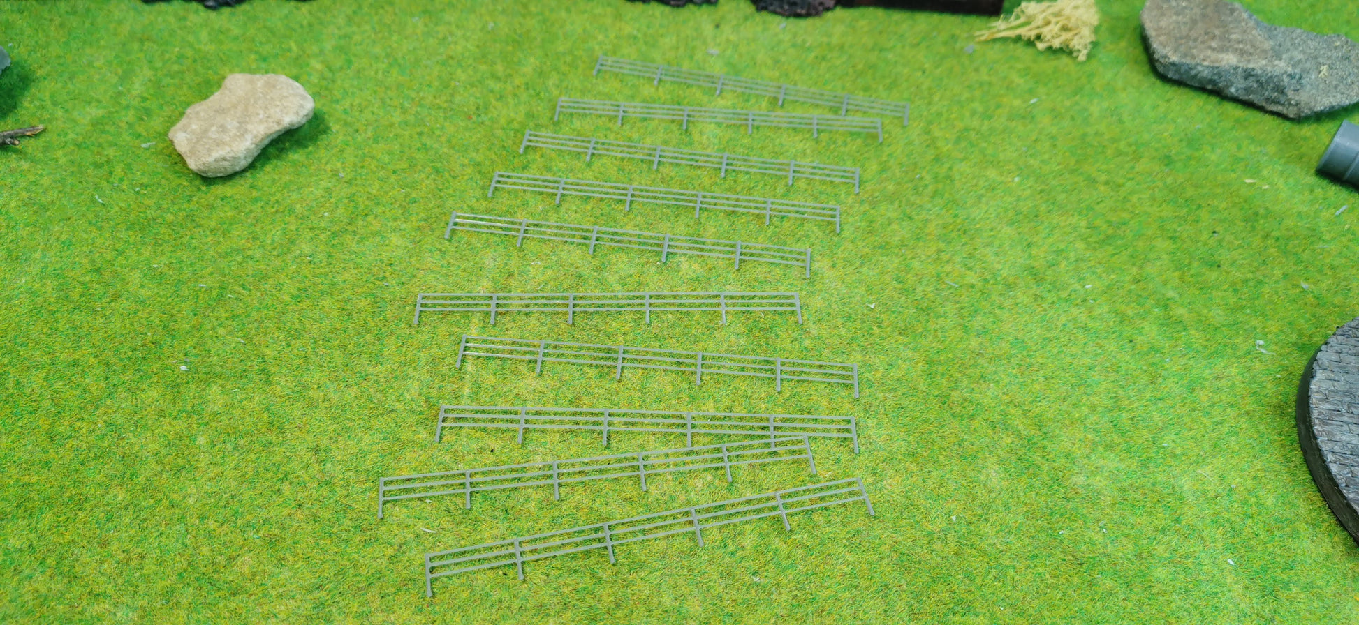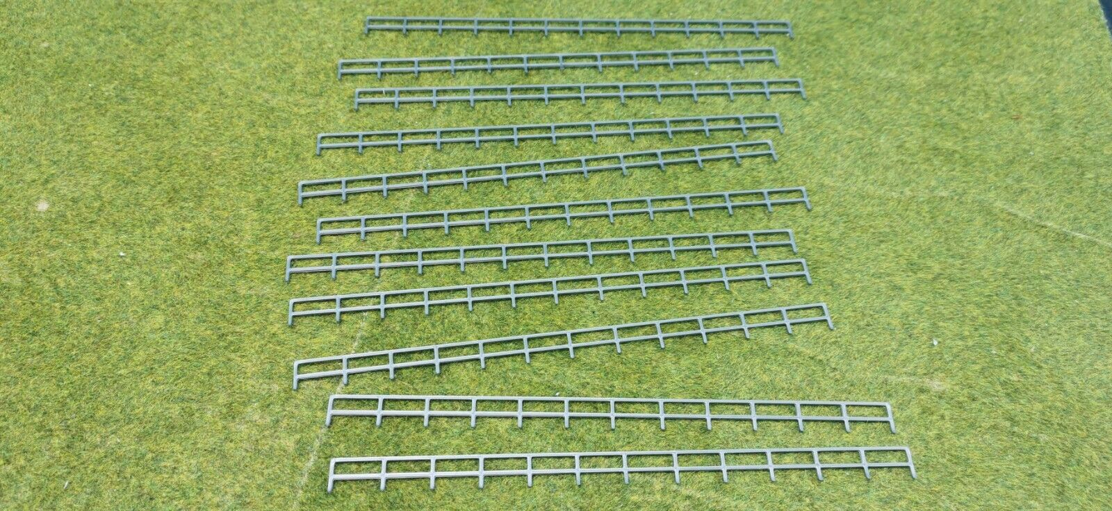 Dieses Set besteht aus 12 Geländer- bzw. Zaunelementen, hergestellt im FDM-Druckverfahren aus PLA-Filament. Die Zäune eignen sich ideal für Modellbau, Dioramen oder Anlagenbau – etwa im Stadt- oder Industriebereich.