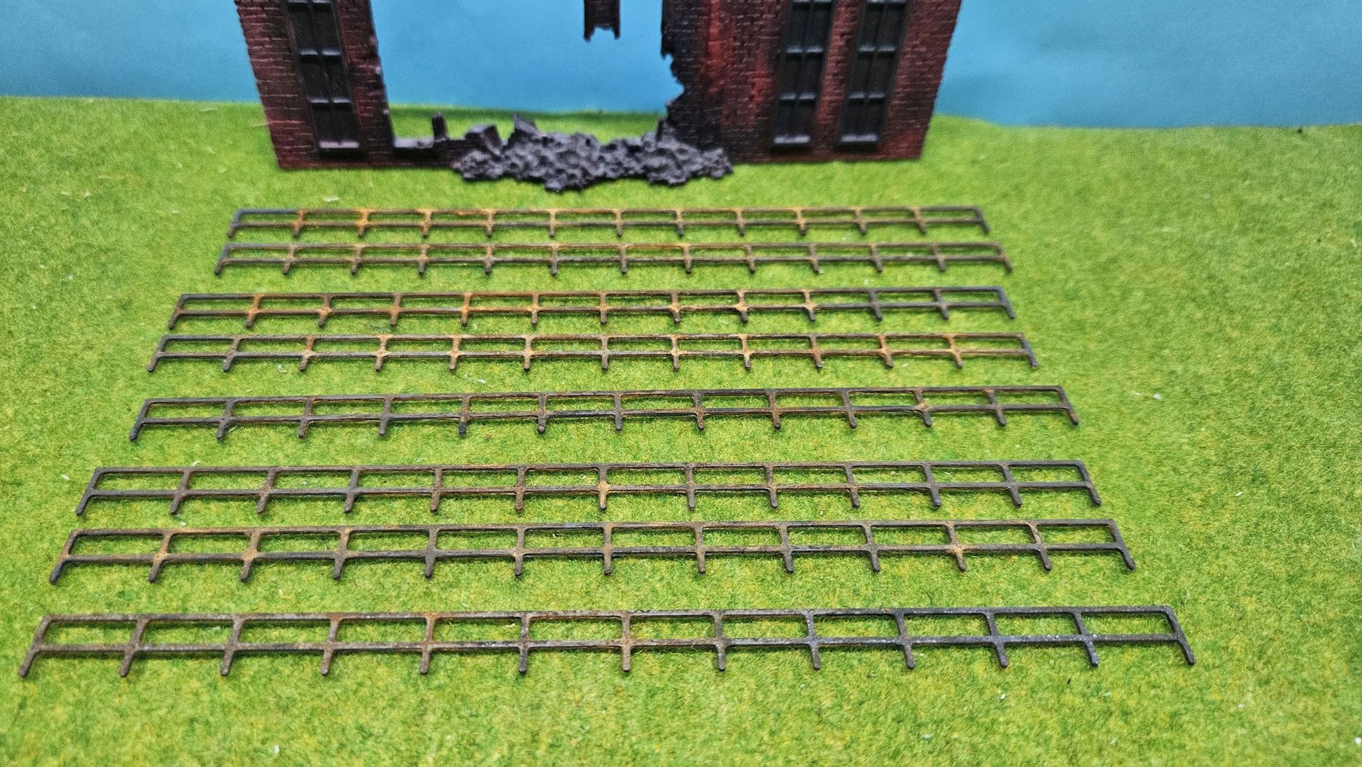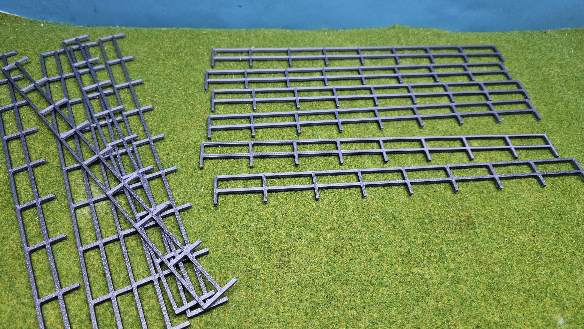 Dieses Set besteht aus 12 Geländer- bzw. Zaunelementen, hergestellt im FDM-Druckverfahren aus PLA-Filament. Die Zäune eignen sich ideal für Modellbau, Dioramen oder Anlagenbau – etwa im Stadt- oder Industriebereich.