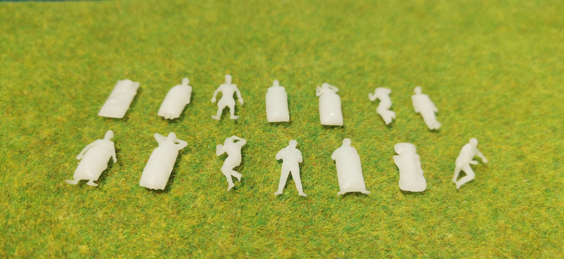 Die Figuren wurden speziell so gestaltet, dass sie auch in gängige Schlafwaggons bekannter Hersteller passen. Sie sind ca. 17–18 mm groß.