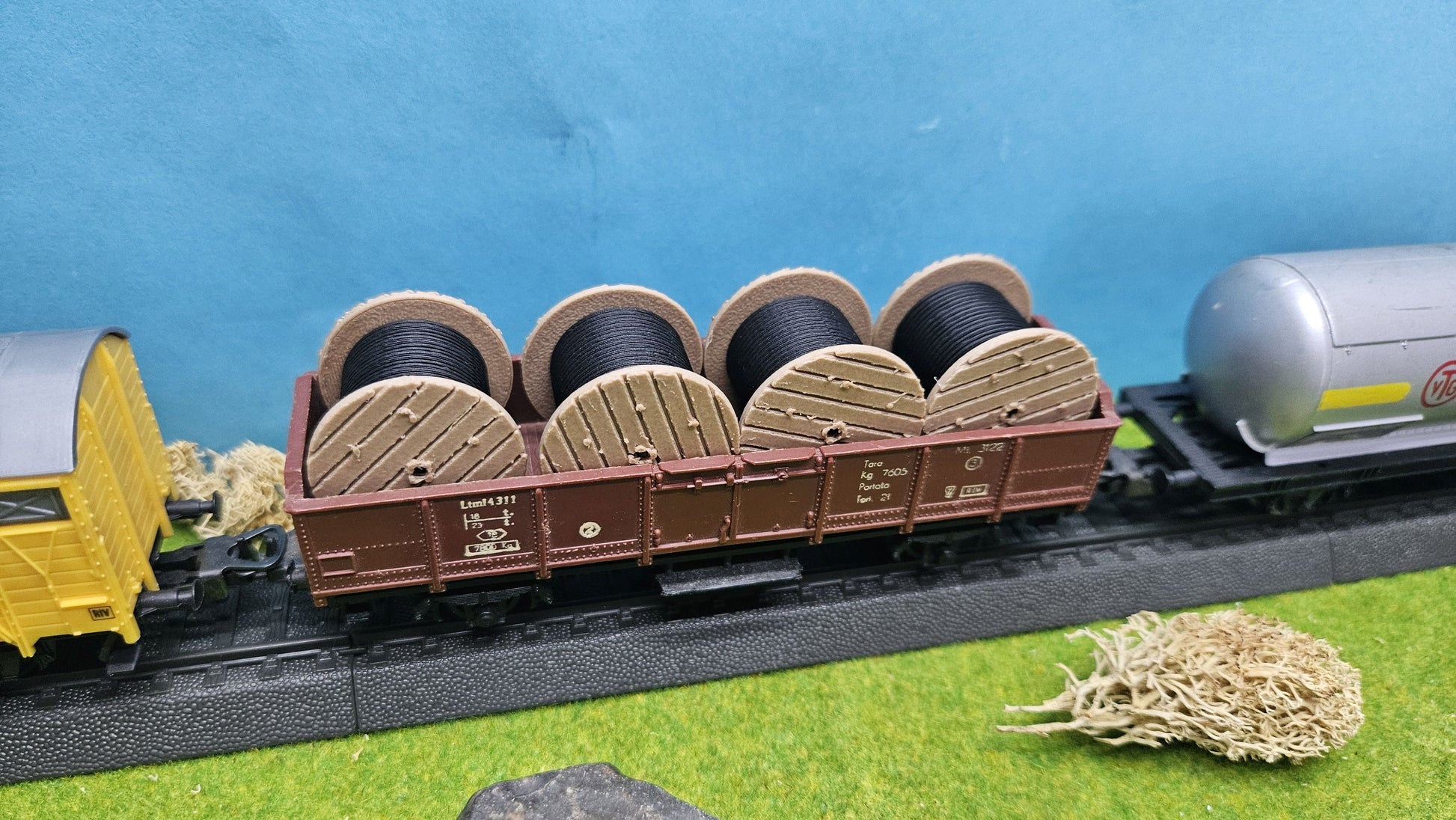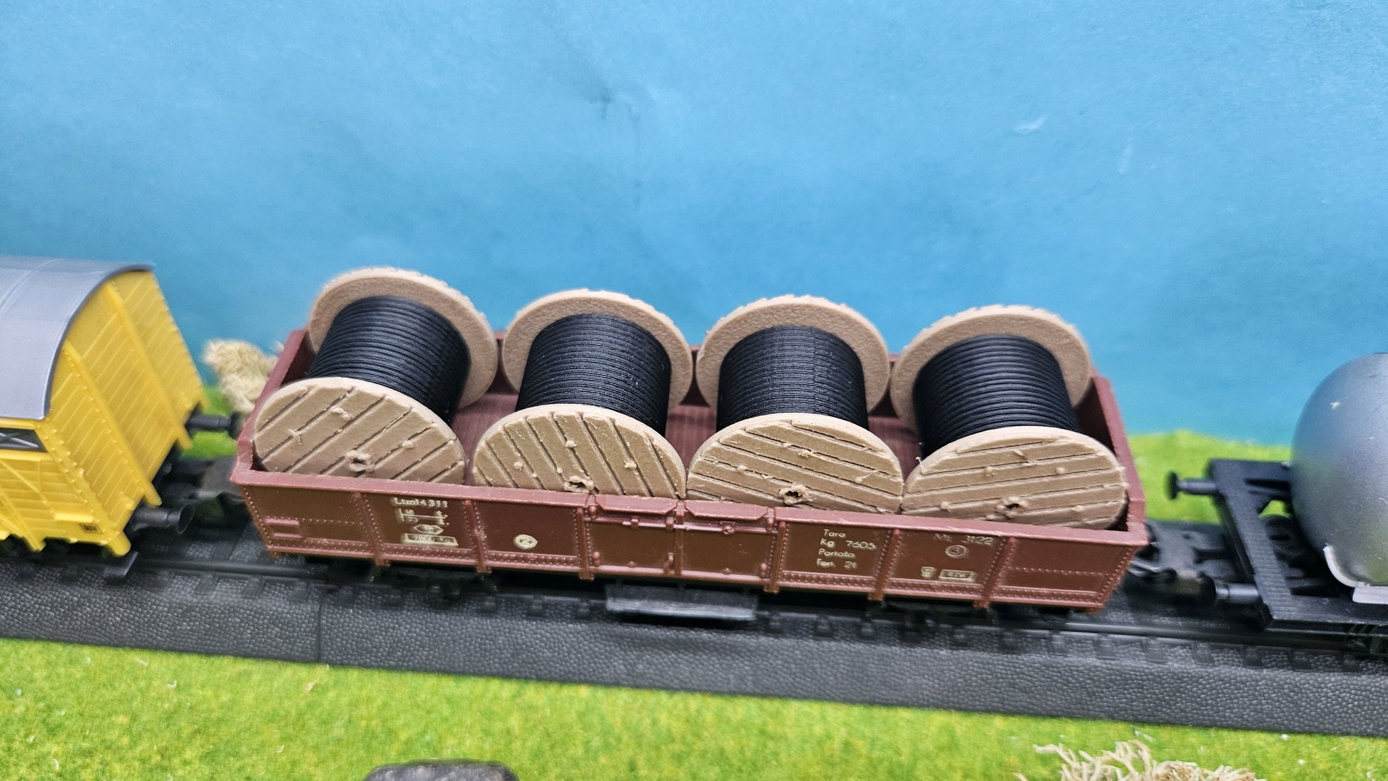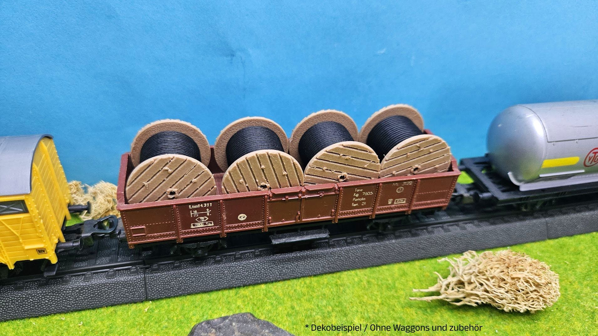 Diese detailgetreuen Kabeltrommeln sind bereits farblich gestaltet und kommen als Bausatz, der noch zusammengeklebt werden muss. Ideal geeignet für Schwerlastwagons, Flachwagen oder als Deko-Element in Modellbahnanlagen und Dioramen.