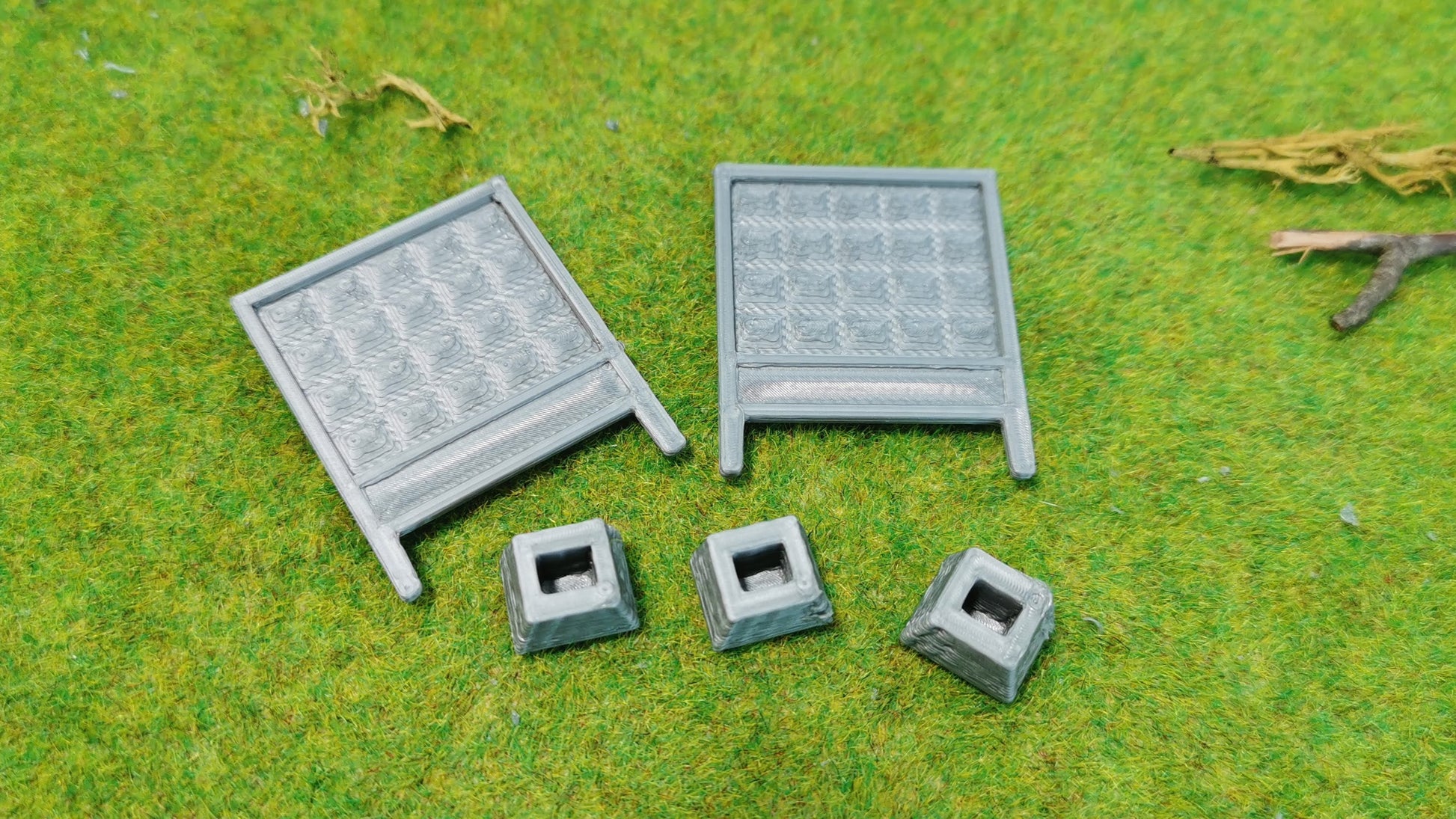 Modell eines typischen sowjetischen PO-2-Betonzauns (ПО-2), wie er in der ehemaligen UdSSR und im Ostblock zur Einfriedung von Industrieanlagen, Kasernen oder Sperrgebieten eingesetzt wurde. Gefertigt im robusten FDM-Druckverfahren aus PLA in Betonoptik.