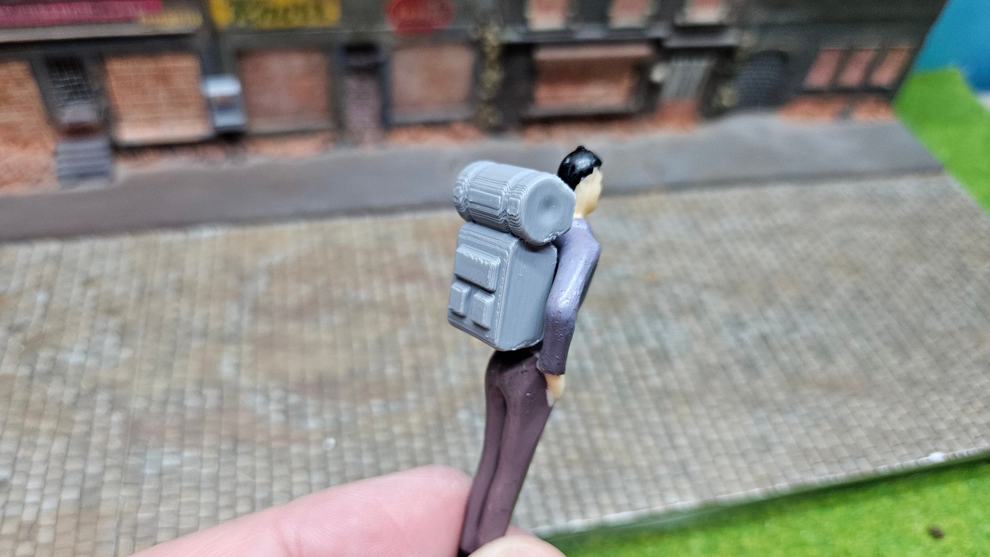 Toll für alle Modelleisenbahn-Fans und Dioramen-Bauer: 3 Stück hochwertig 3D-gedruckte Rucksäcke (unbemalt, robustes PLA+-Material) in diversen Maßstäben – die idealen Accessoires für realistische Szenen mit Reisenden, Wanderern, Bahnhofspendlern oder Campern! Ohne Figuren – nur die Rucksäcke!