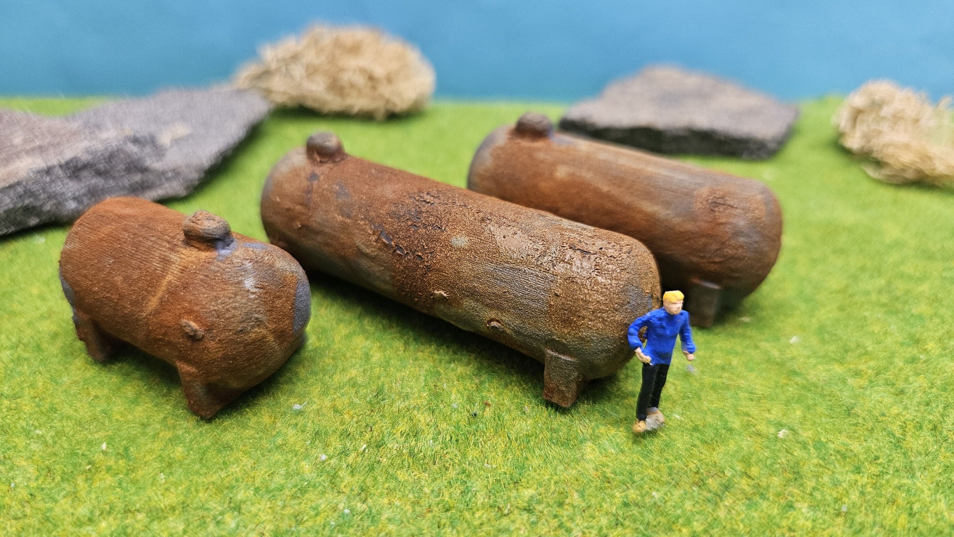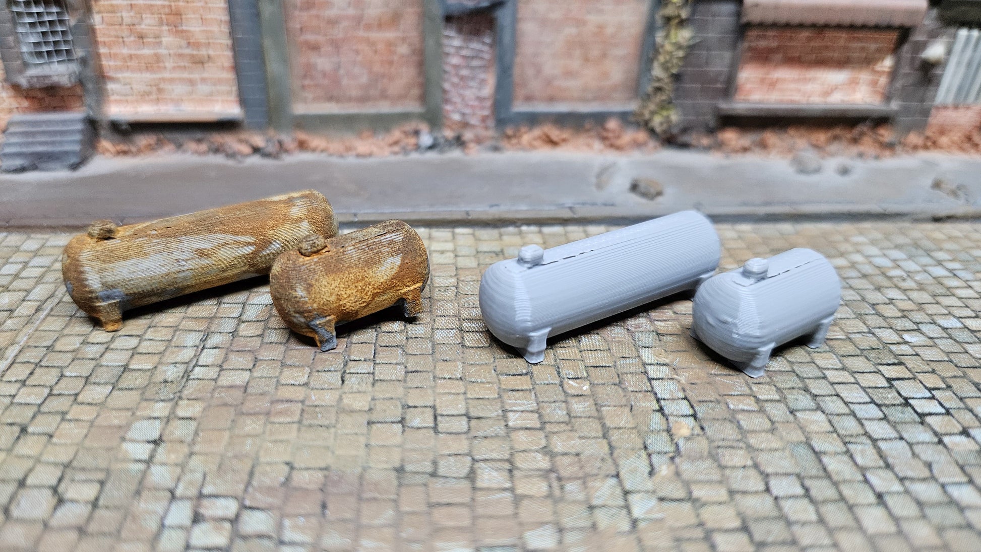 Setze mit diesem 3er-Set verrosteter LPG Tanks einen authentischen Akzent in deiner Modellwelt! Wähle zwischen dem realistischen Echtrost-Look oder der unbemalten Variante zum individuellen Gestalten. Ideal für Industrieanlagen, Bahnhöfe oder verlassene Areale.