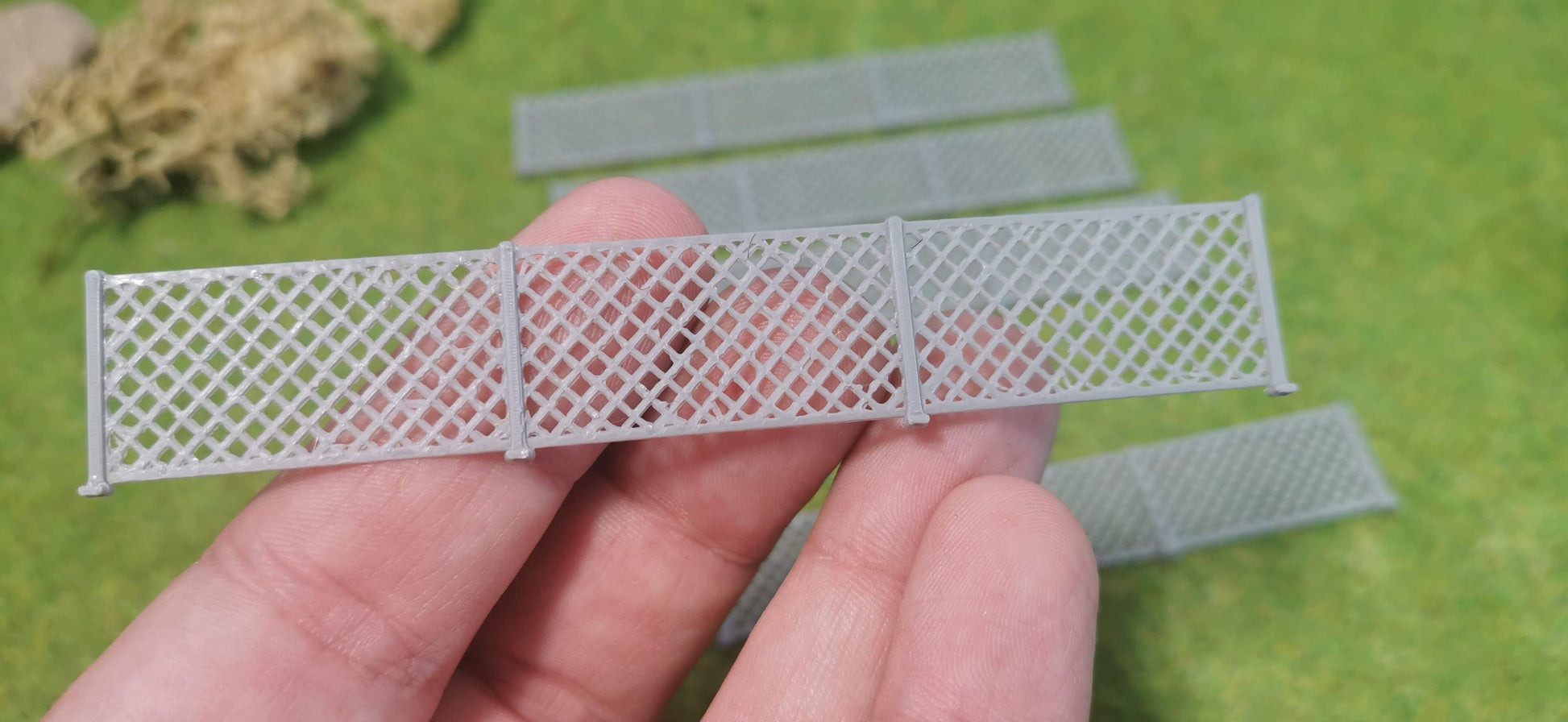 Robust gestalteter Industriezaun zur realistischen Umzäunung von Industrieanlagen, Werkshöfen, Militärgeländen oder abgesperrten Bereichen auf Modellanlagen. Das Set wird im FDM-3D-Druckverfahren aus PLA gefertigt und ist stabil, langlebig und einfach zu verarbeiten.