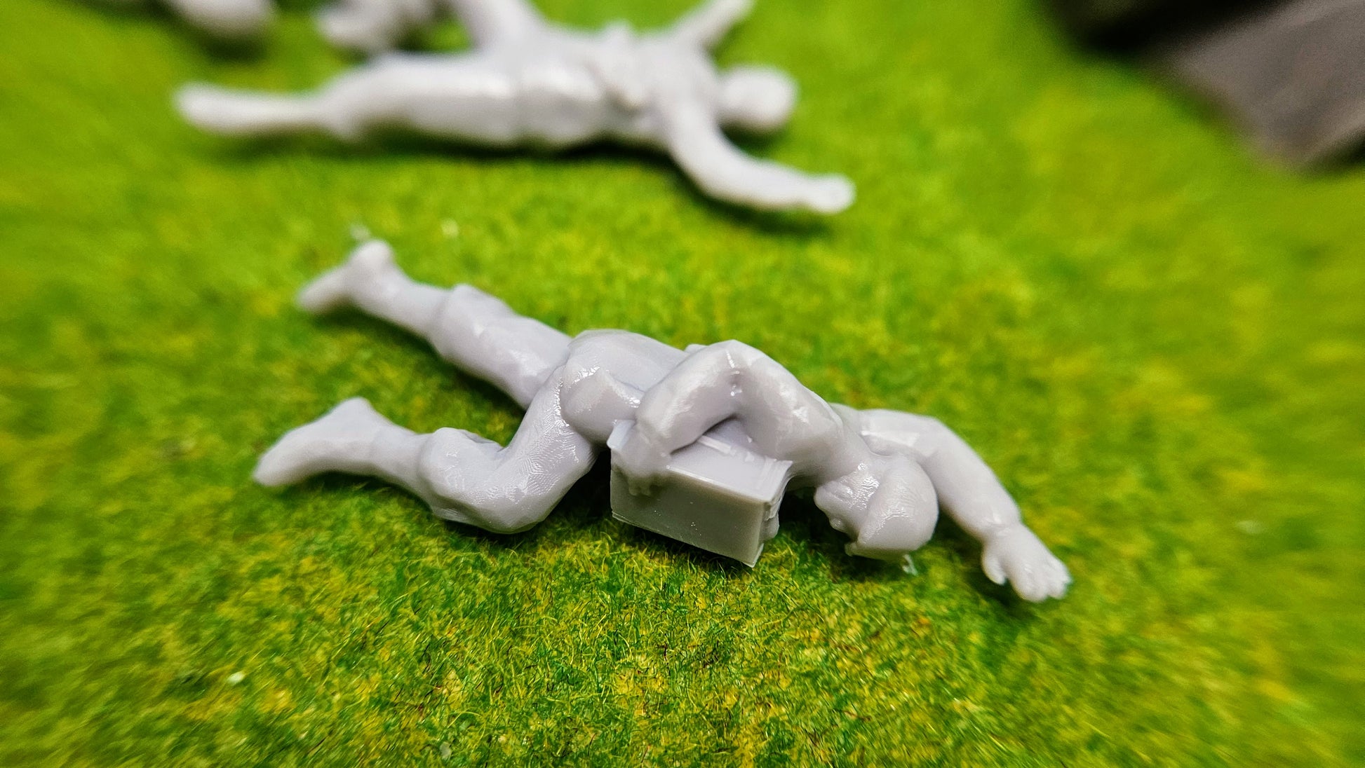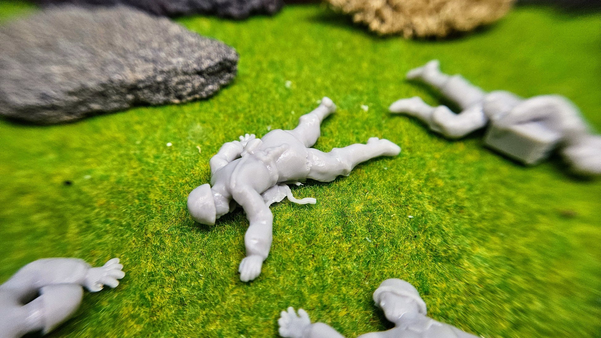 Jede Figur stellt eine unterschiedliche Pose gefallener Soldaten dar – mit hoher Detailtreue und realistischer Anatomie modelliert. Die Ausführung in hochwertigem Resin sorgt für feine Konturen und eine saubere Verarbeitung.