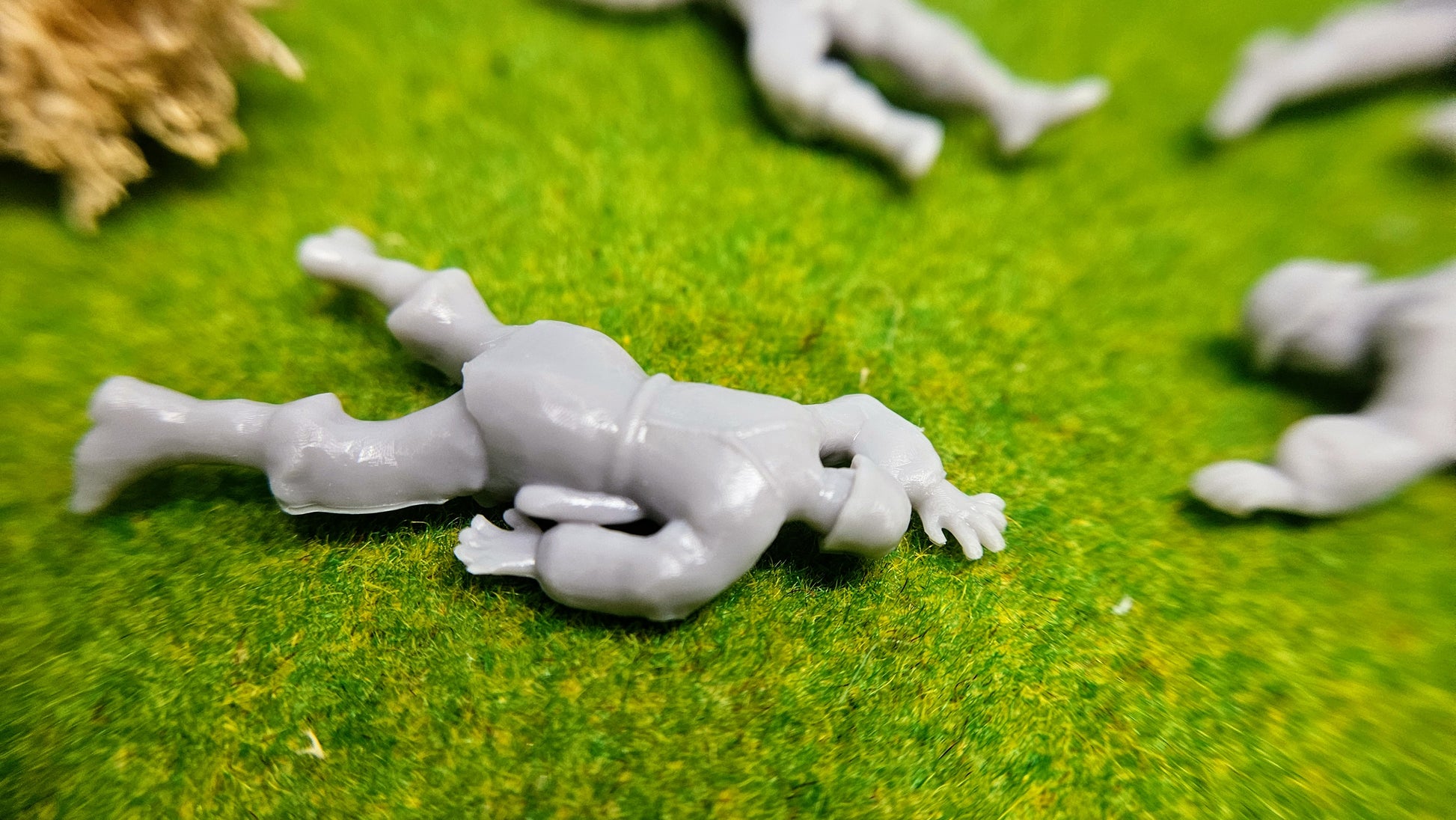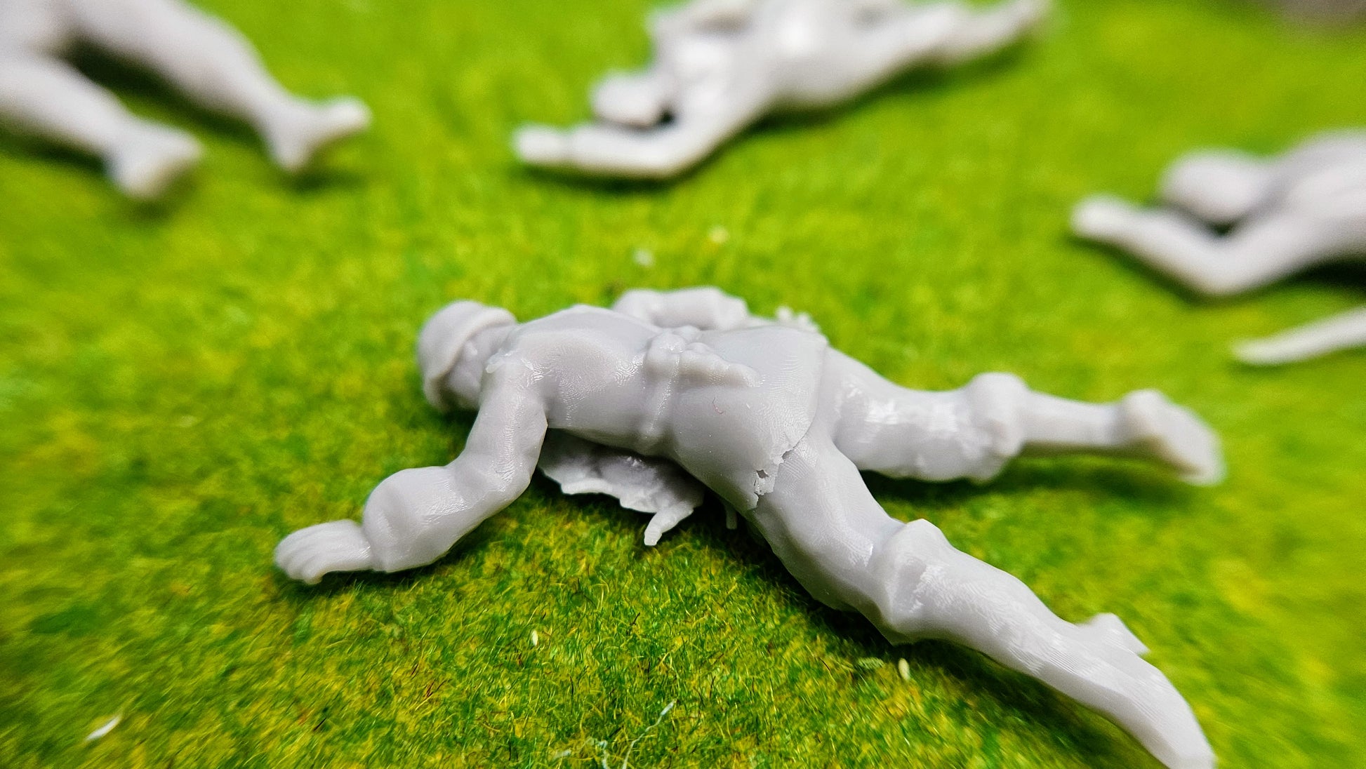 Jede Figur zeigt eine unterschiedliche Pose gefallener amerikanischer Soldaten – mit großer Sorgfalt gestaltet und detailgetreu modelliert. Das verwendete hochwertige Resin ermöglicht feine Strukturen und eine besonders realistische Darstellung.