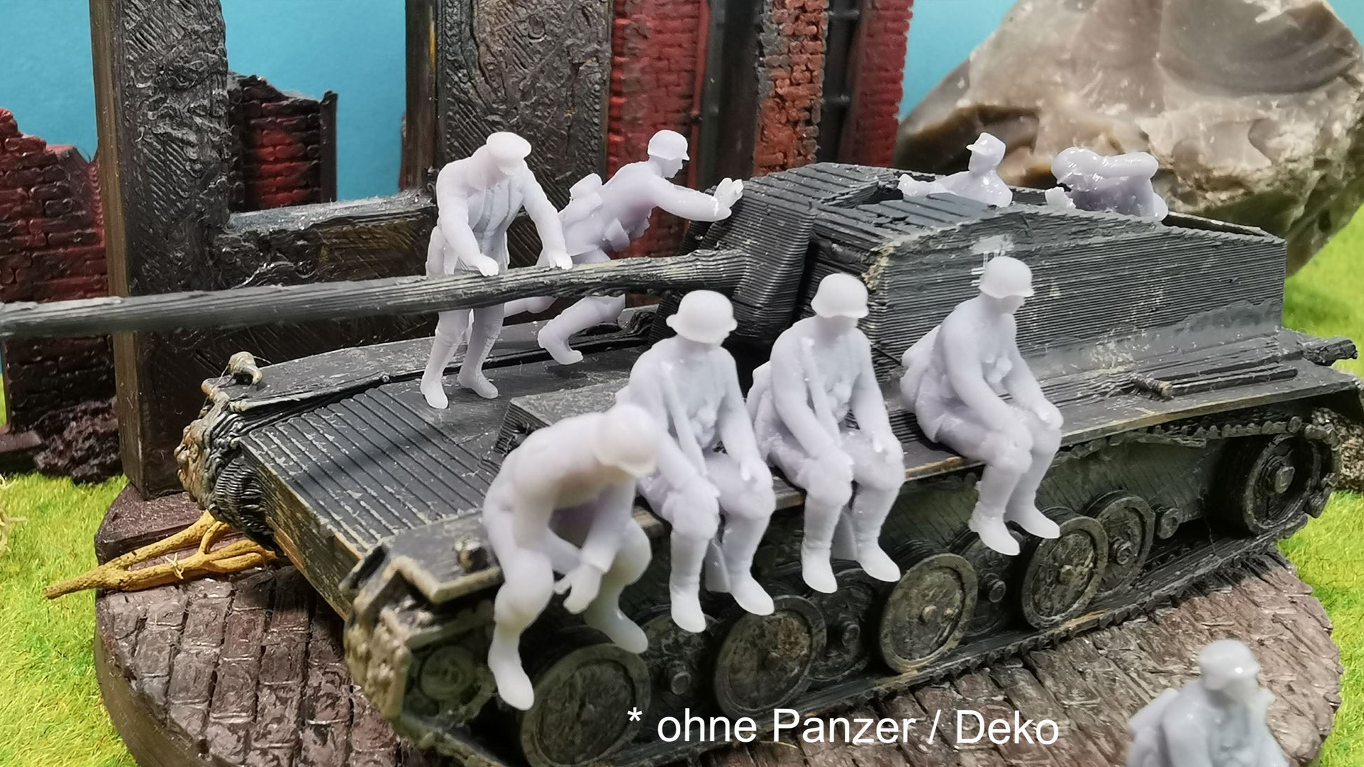 Die Figuren bestehen aus hochwertigem Resin und wurden mittels feinem 3D-Resindruck gefertigt. Die Details sind gestochen scharf und bestens für authentische Dioramen geeignet.