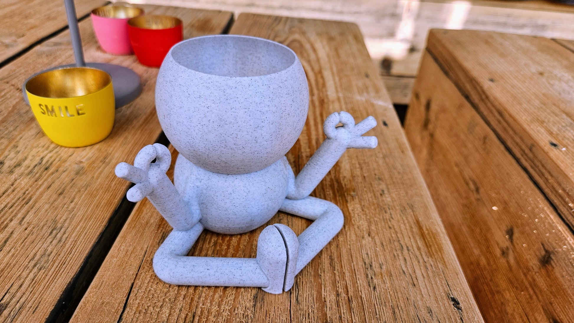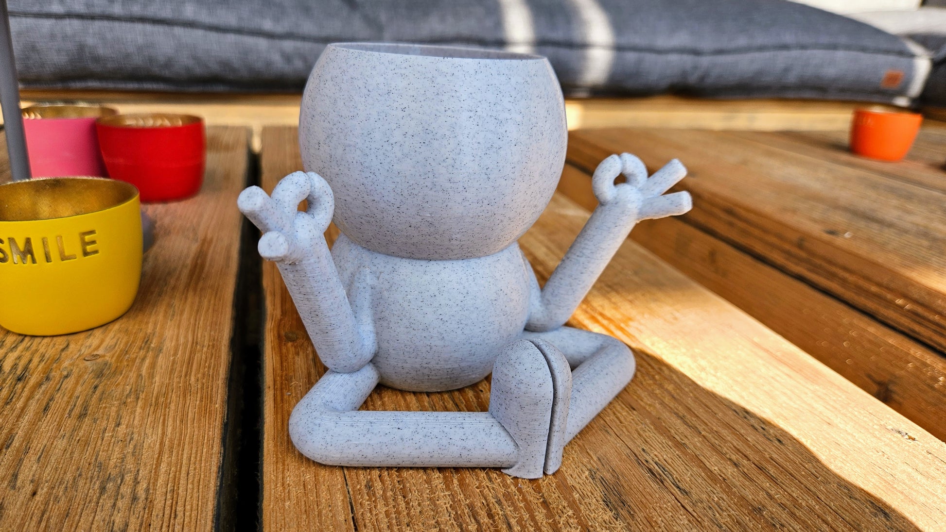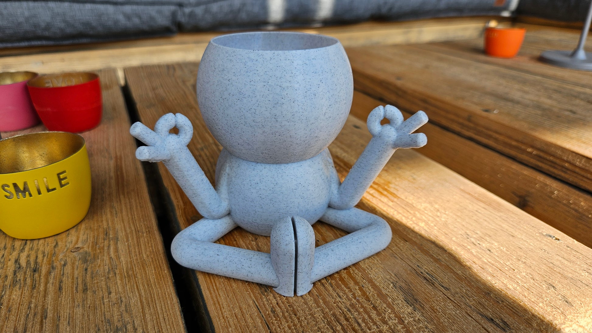 Harry Plant "Meditation" lustiger Blumentopf zeigt Entspannungsübung