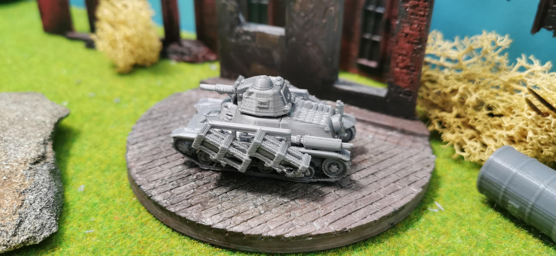 Der Hotchkiss 39H mit Wurfrahmen war ein französisches leichtes Panzerfahrzeug, das im Zweiten Weltkrieg von der französischen Armee verwendet wurde. Der Hotchkiss 39H war ursprünglich als leichter Infanteriepanzer konzipiert, wurde jedoch später mit einem Wurfrahmen ausgestattet, um Wurfgeschosse für spezialisierte Angriffe abfeuern zu können. Dieser Umbau machte den Panzer zu einem vielseitigen Unterstützungsfahrzeug für die französischen Streitkräfte während der frühen Kriegsjahre. Das Modell stellt diese einzigartige Modifikation des Hotchkiss 39H dar und eignet sich hervorragend für Sammler, Modellbauer und Dioramen-Liebhaber.
