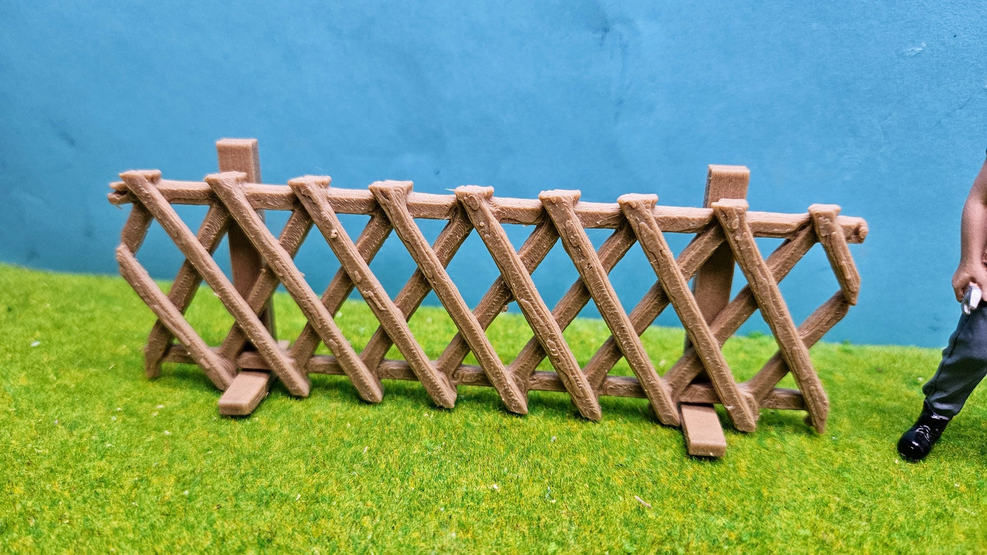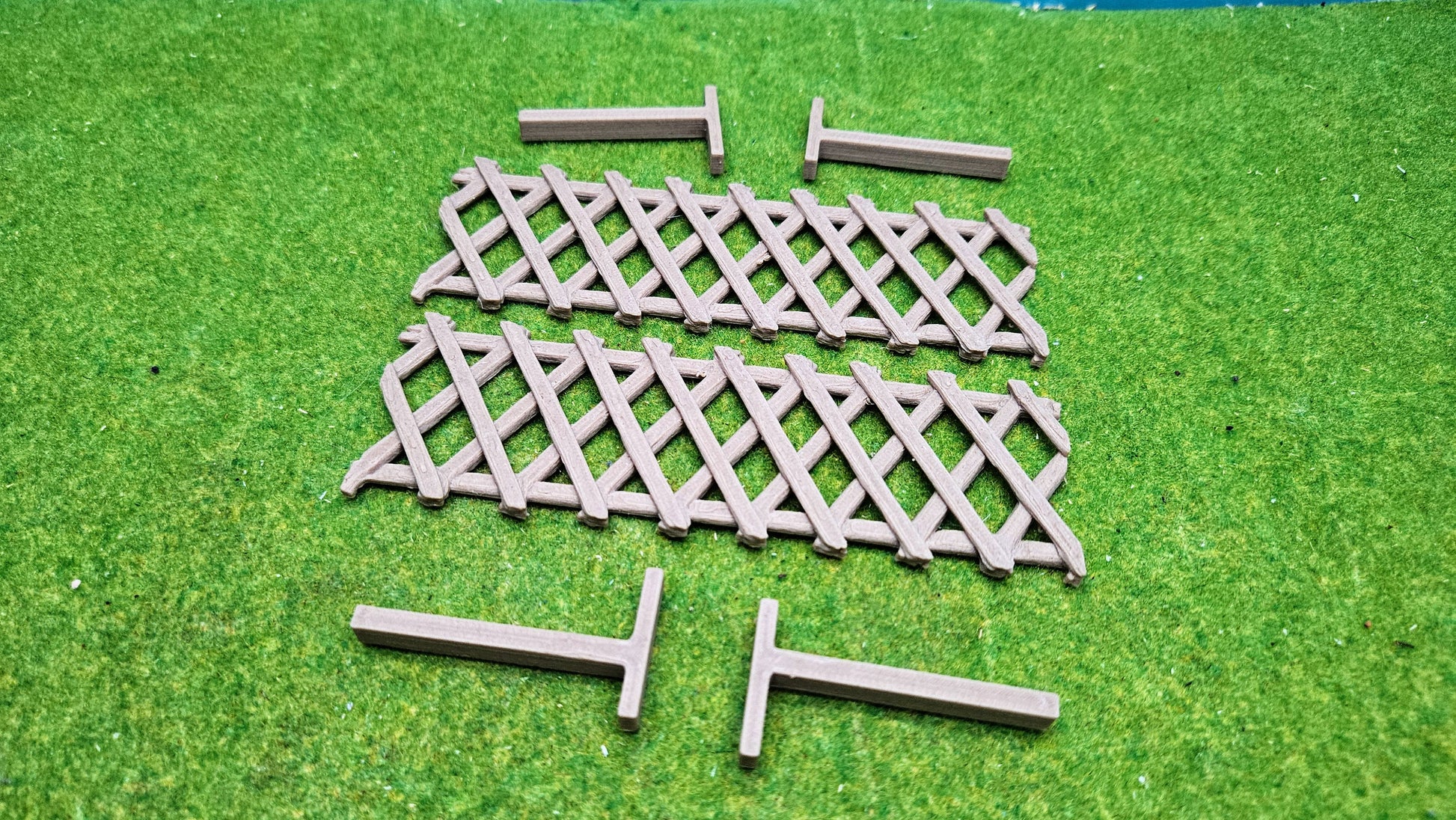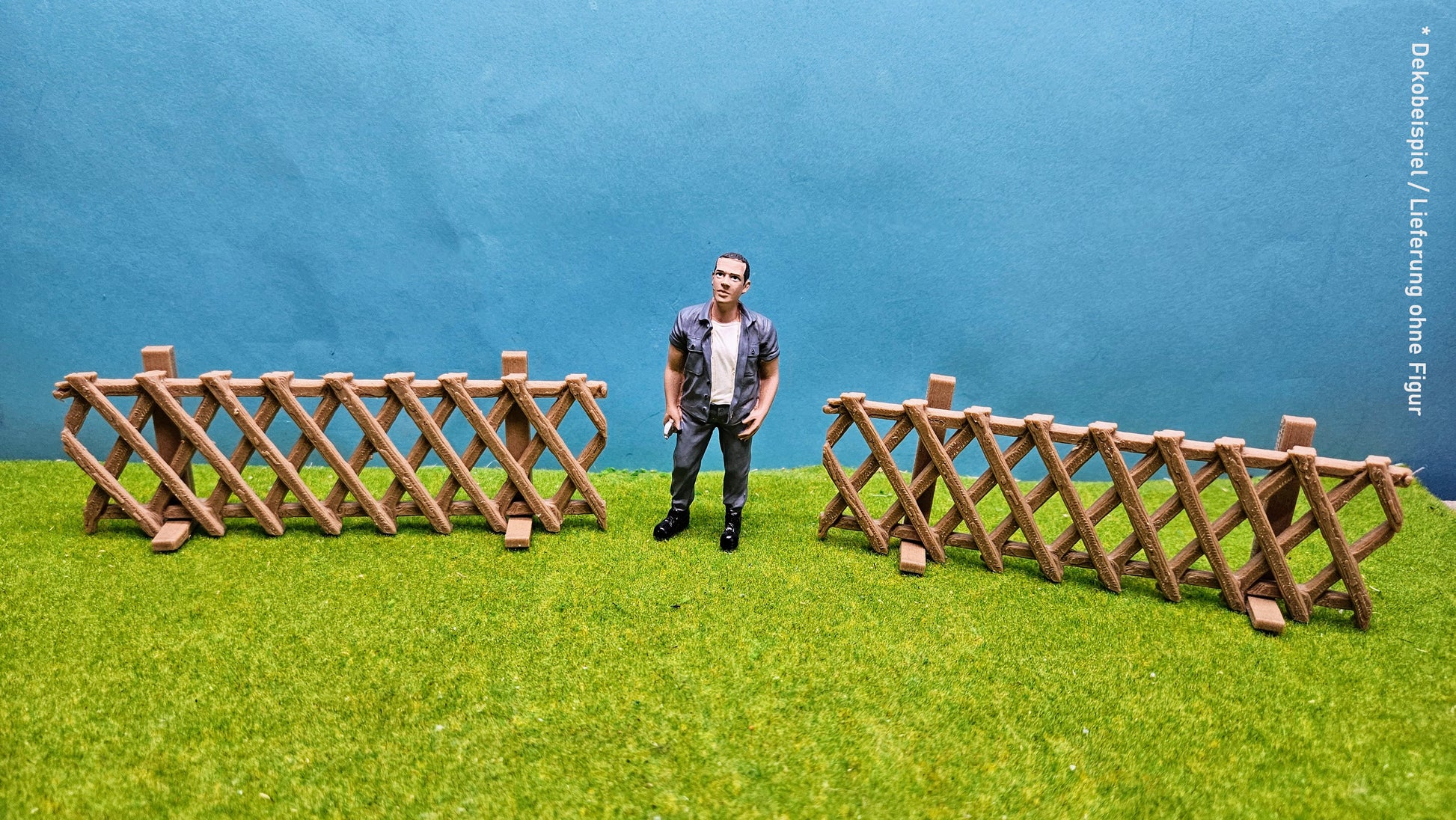 Dieser detailreiche Jägerzaun ist die perfekte Ergänzung für deine Spur G Modellbauanlage. Gefertigt aus einem hochwertigen Holz-Kunststoff-Mix (Holzfilament) überzeugt der Zaun durch eine realistische Holzoptik und stabile Ausführung. Die passenden Standfüße sind im Lieferumfang enthalten und können einfach angeklebt werden.