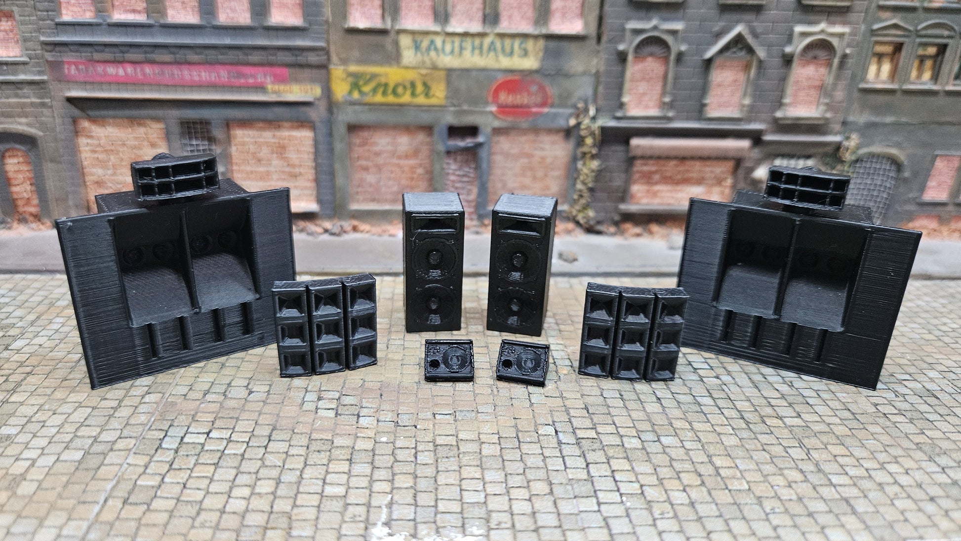 Mit diesem Lautsprecherset bringst du eine beeindruckende Soundkulisse in deine Modellwelt – die perfekte Ergänzung für jede Anlage oder jedes Diorama in H0, TT, 1:100 oder 1:72.