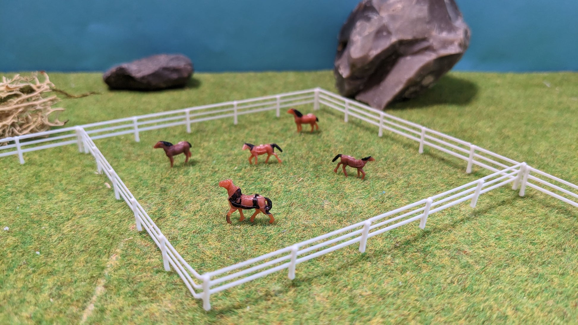 Gestalte deine Modellanlage authentisch mit unserem detailreichen Koppel- bzw. Weidezaun – perfekt geeignet für Pferdekoppeln, Weiden oder ländliche Gehöfte. Der Zaun lässt sich flexibel einsetzen und kann an jedem Pfosten einfach getrennt oder leicht umgebogen werden, um auch geschwungene Formen und Rundungen zu realisieren.