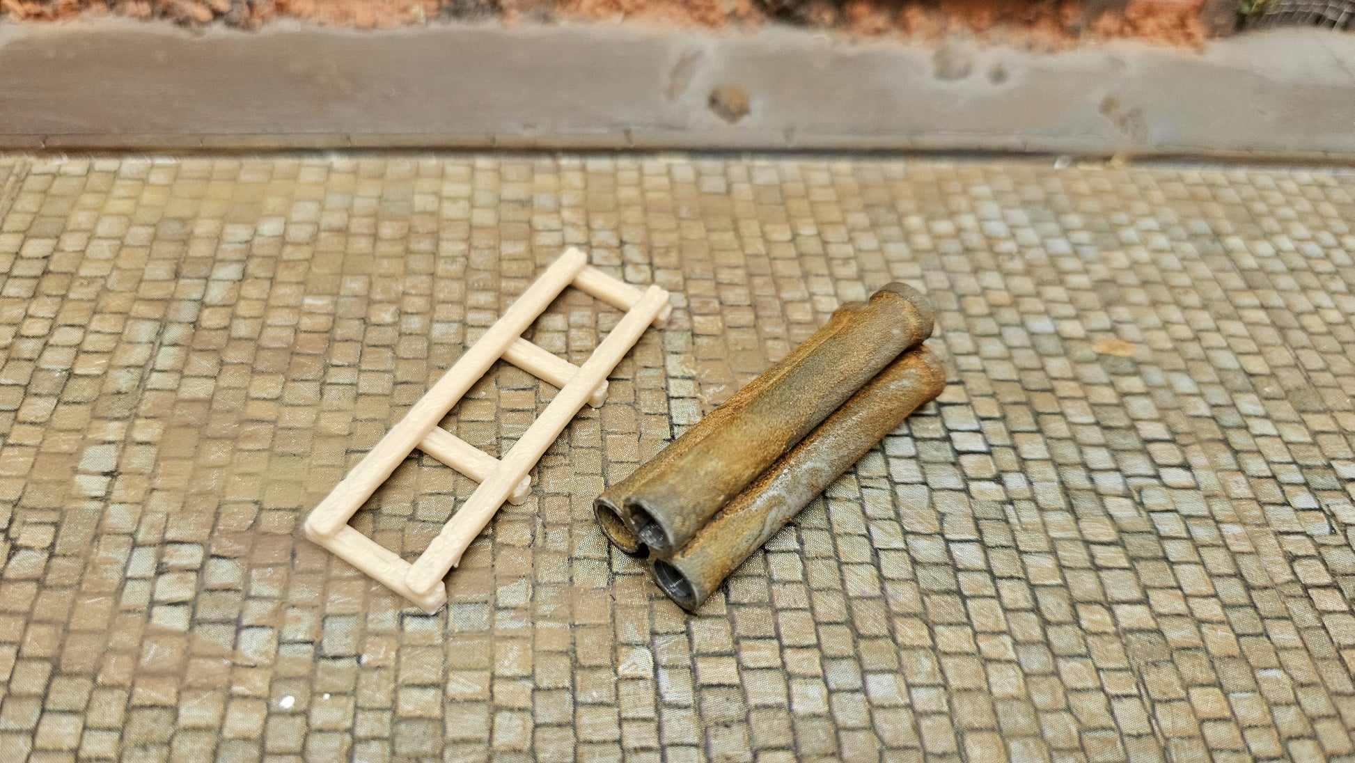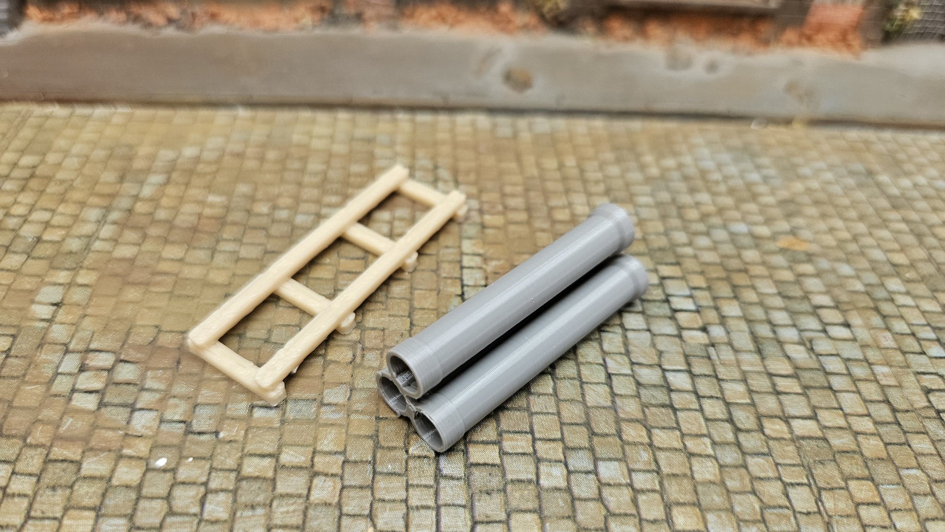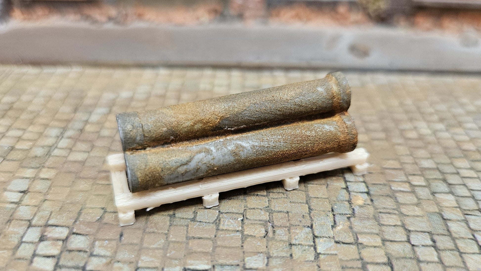 Dieses realistische Ladegut-Set besteht aus mehreren Industrierohren, die auf einer passenden Holzpalette arrangiert sind. Perfekt geeignet für Güterwagen, LKWs, Baustellen, Lagerflächen oder Verladestellen im industriellen Umfeld.