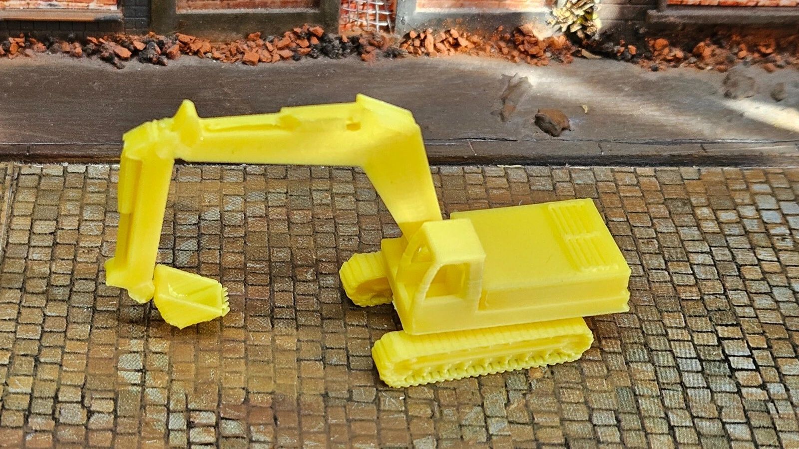 Kleines Detail, große Wirkung: Dieser Mini-Bagger im Maßstab 1:160 (Spur N) bringt authentische Baustellen-Atmosphäre auf deine Modellanlage. Das Modell wird als Bausatz geliefert – in Gelb gedruckt und unbemalt, sodass du ihn individuell gestalten kannst.