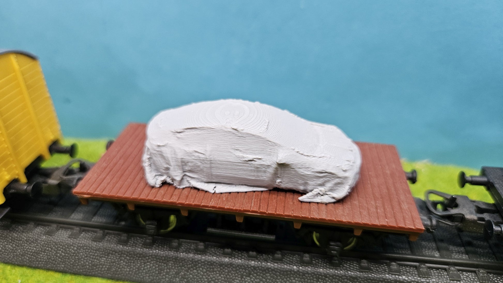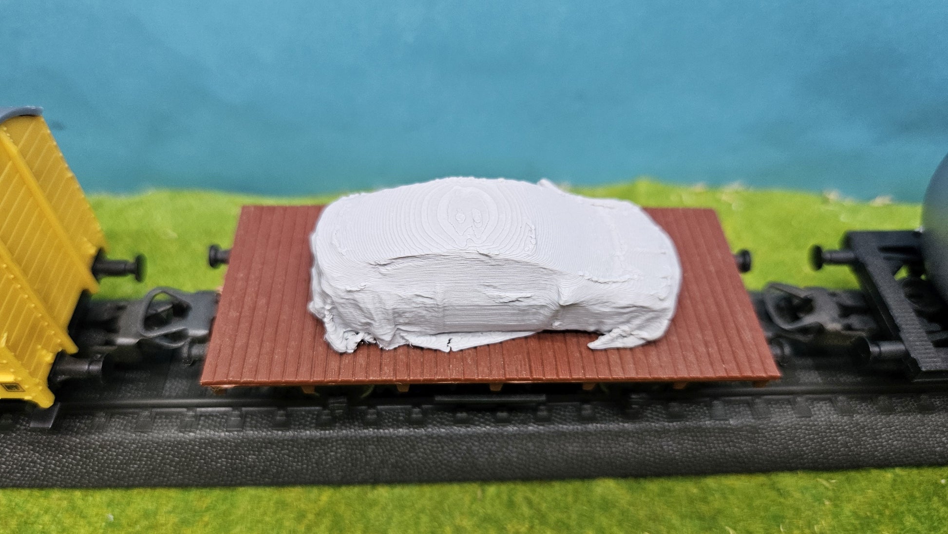 Dieses Fahrzeugmodell stellt ein verdecktes Auto unter einer festen Plane dar. Es ist ideal geeignet für Modelleisenbahn-Anlagen, Dioramen oder als Ladegut auf offenen Güterwagen.