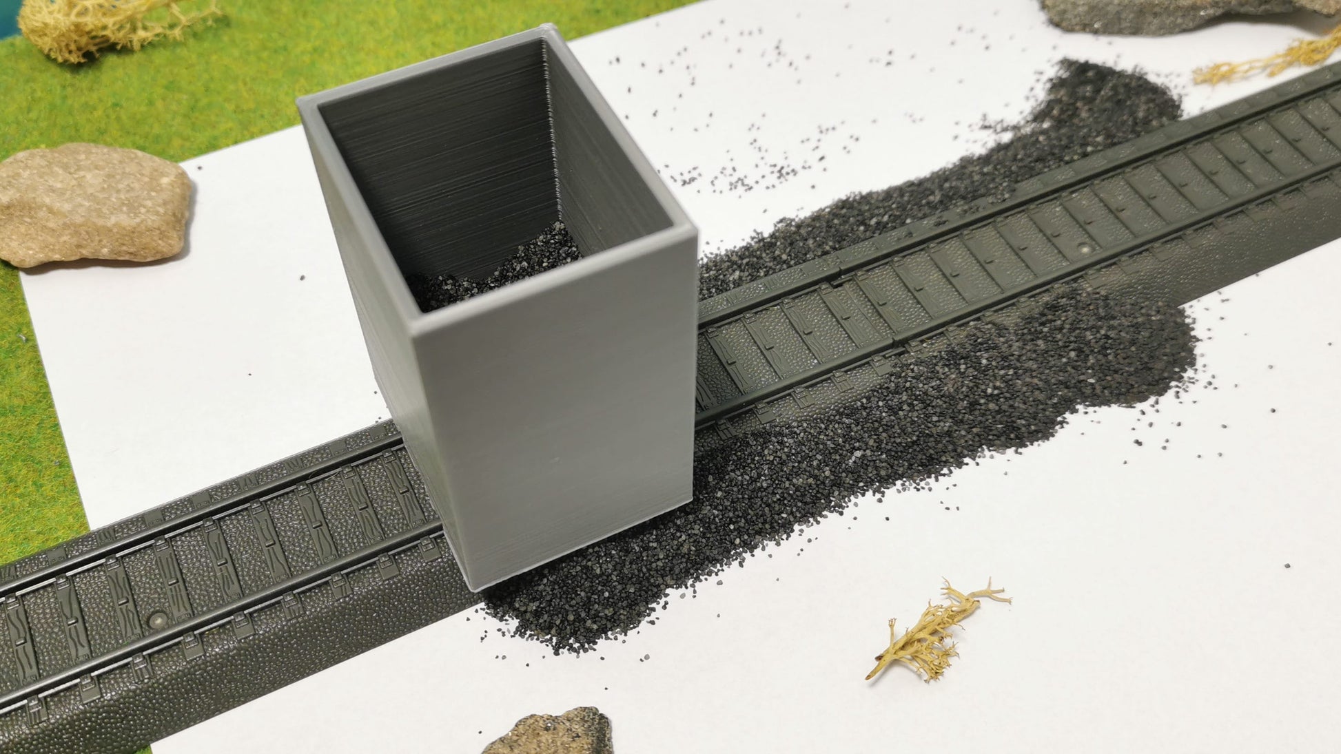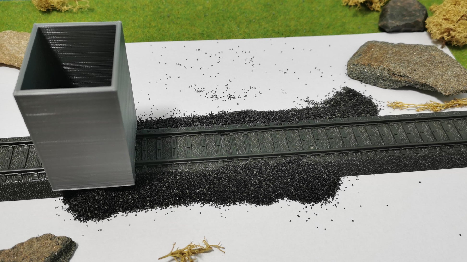 Mit dieser Schotterhilfe ohne Damm lässt sich Gleisschotter zuverlässig, schnell und gleichmäßig aufbringen. Perfekt geeignet für Modellbauer, die saubere Ergebnisse erzielen wollen – ideal für den Einsatz bei Modellbahnanlagen und Dioramen.