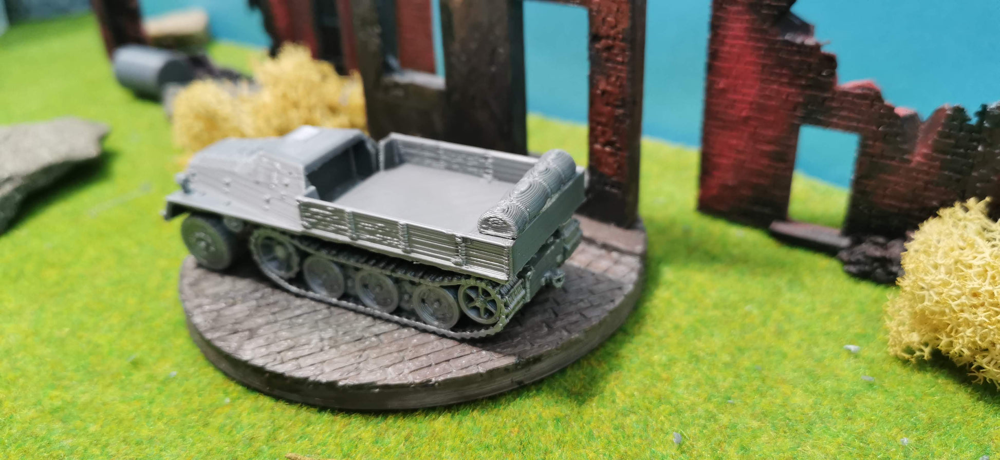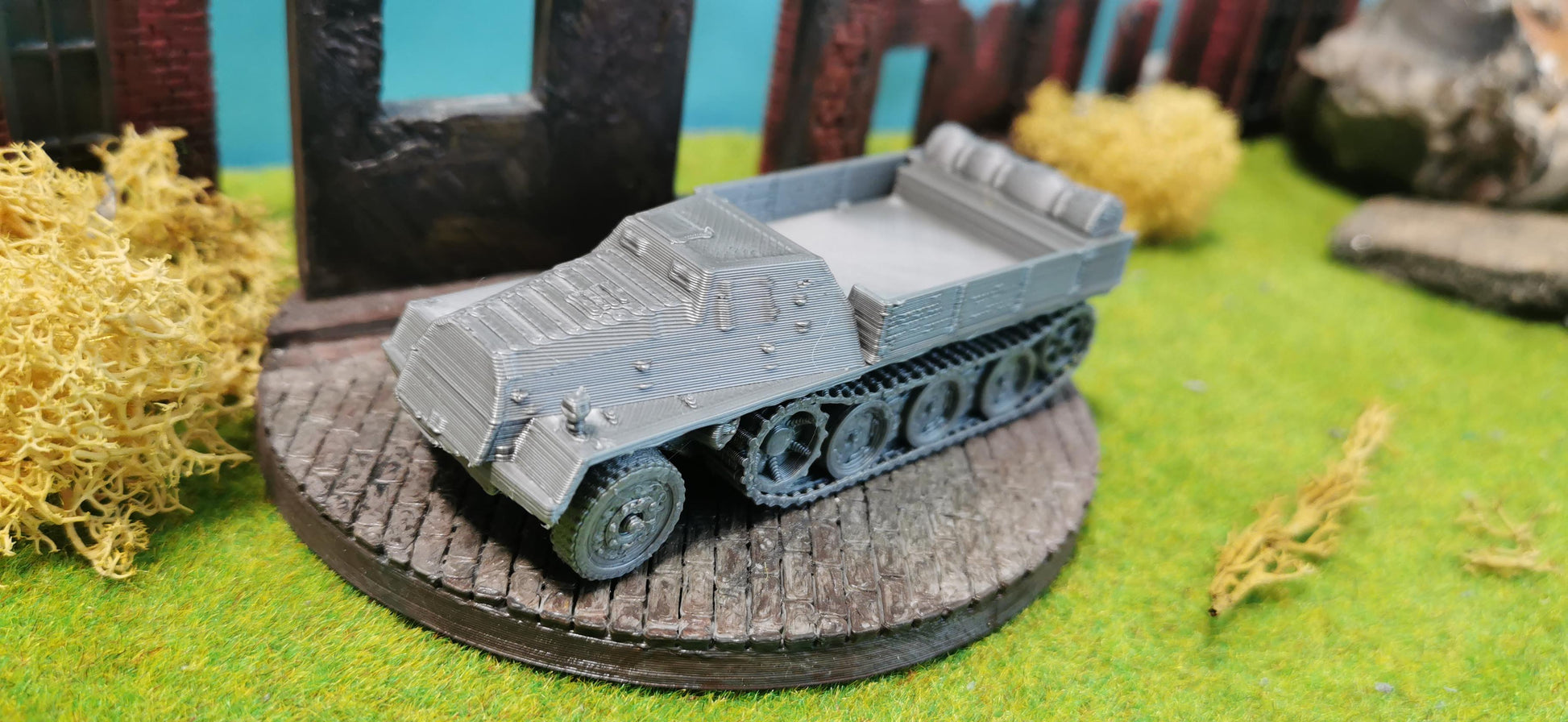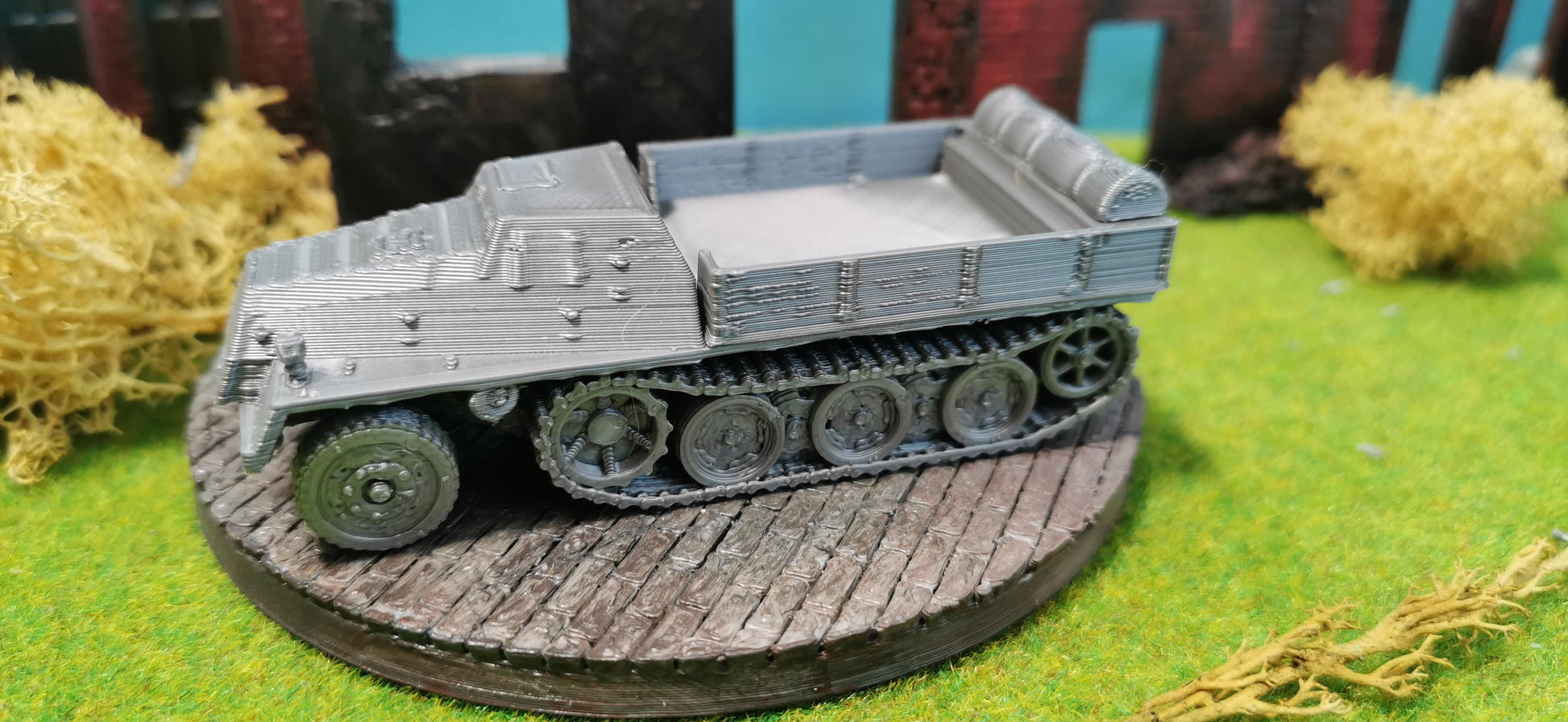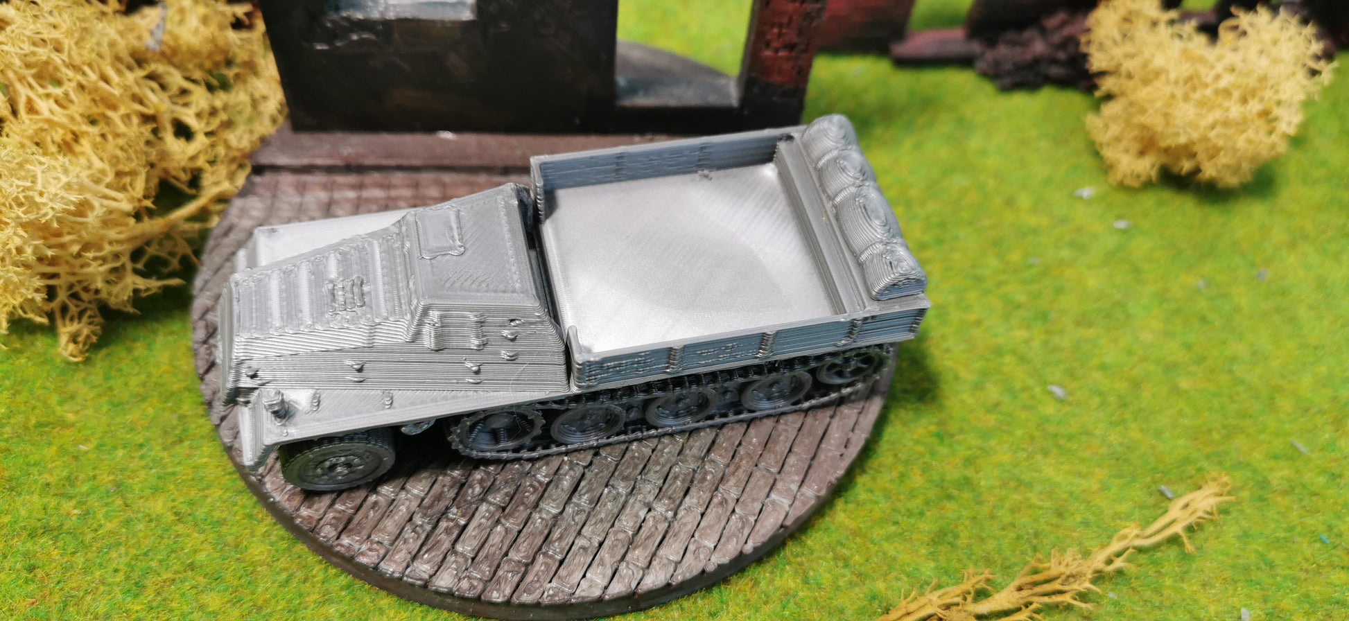 Besonderheiten: Offene Ladefläche für Flexibilität beim Transport, Kettenantrieb für Geländegängigkeit, vielseitig einsetzbar im Transport von Ausrüstung, Waffen und Munition