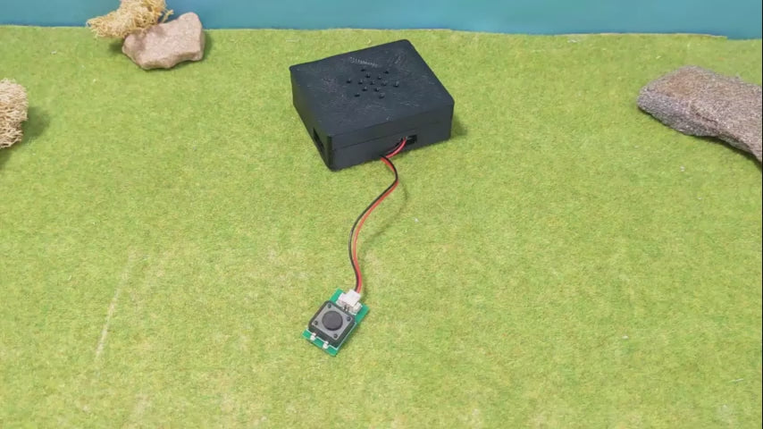 Die Soundwiedergabe startest Du ganz einfach mittels eines externen Knopfes (nicht im Lieferumfang). Mit jedem Drücken wird der Sound von Neuem abgespielt – kein lästiges "Fummeln" mehr unter der Anlage! Die Soundbox verfügt über einen internen Lautsprecher, wodurch Du sie extrem kompakt und unauffällig in Deine Szene integrieren kannst.