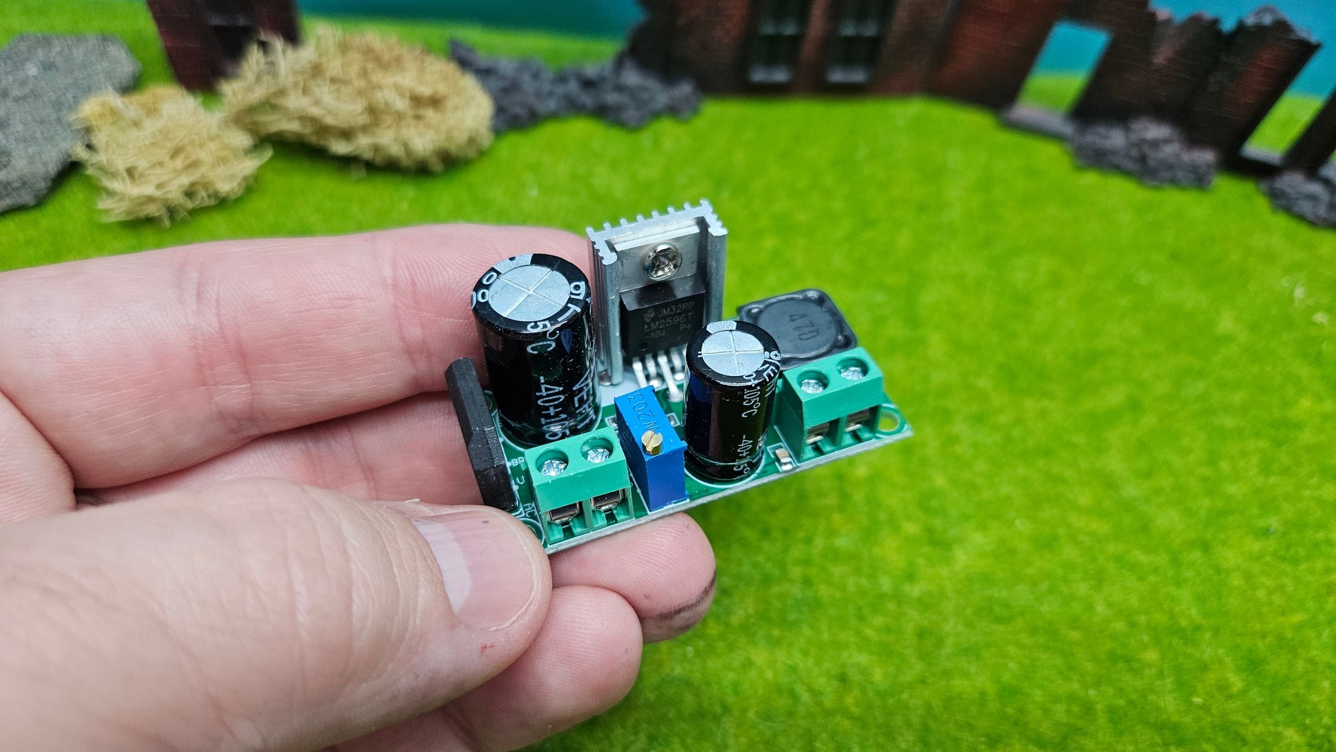 Dieser Spannungsregler wandelt Wechsel- und Gleichstrom effizient in eine stabile Gleichspannung um, die Du via Drehregler von 3V bis 30V DC einstellen kannst. Er ist perfekt geeignet, um den Wechselstrom Deiner Modelleisenbahn in sauberen Gleichstrom für unterschiedlichste Komponenten und Verbraucher zu verwandeln, die variable Spannungen benötigen.